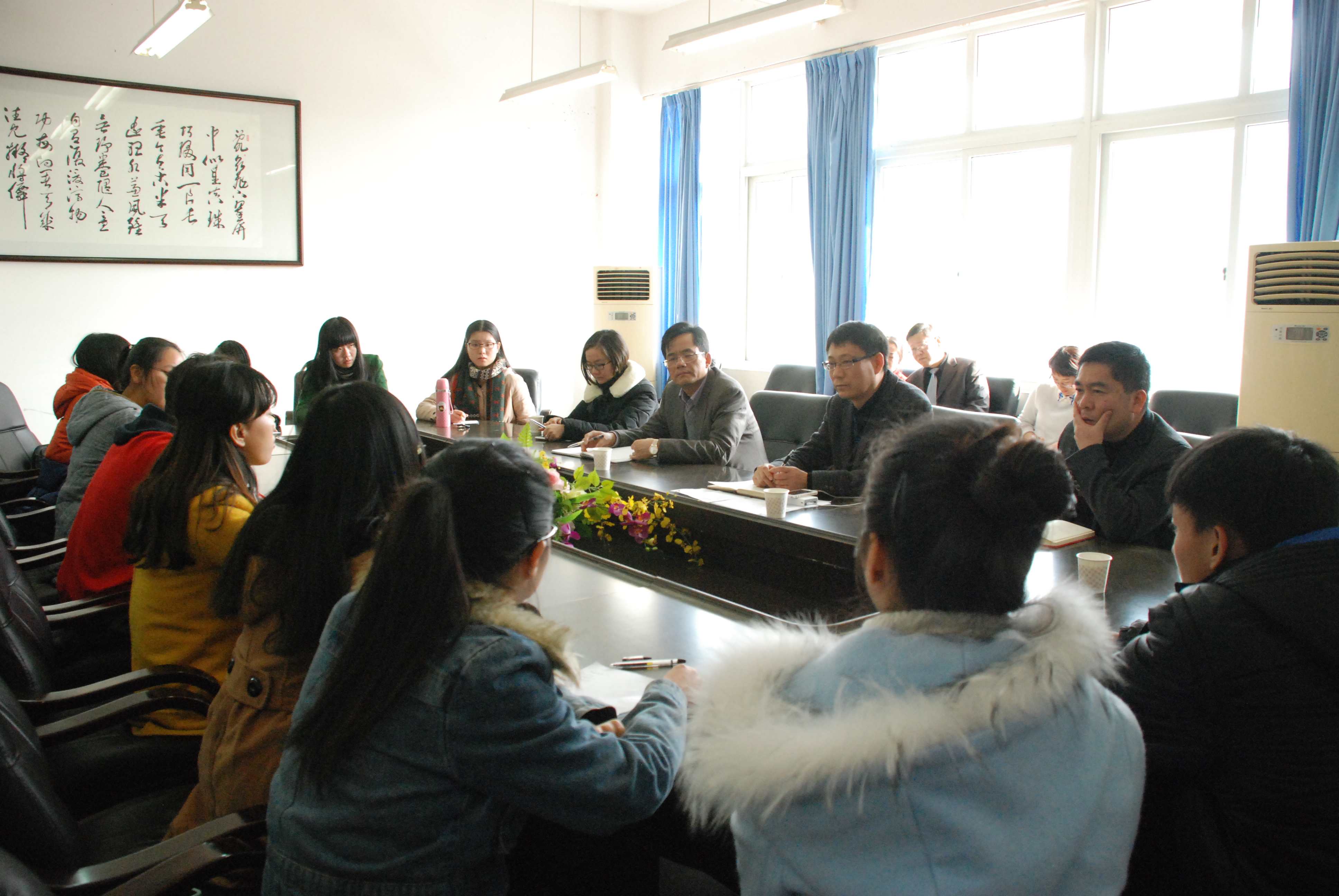开展人才培养质量工作学生座谈会,座谈会在北校区教育楼311会议室举行。出席座谈会的领导有学校学生处长蔡联群处长、教务处蔡桂平副处长、校办陈慧副主任以及学院郑信军院长,孙芙蓉副院长和嵇小怡副书记;同时参加座谈会还有泥巴影院