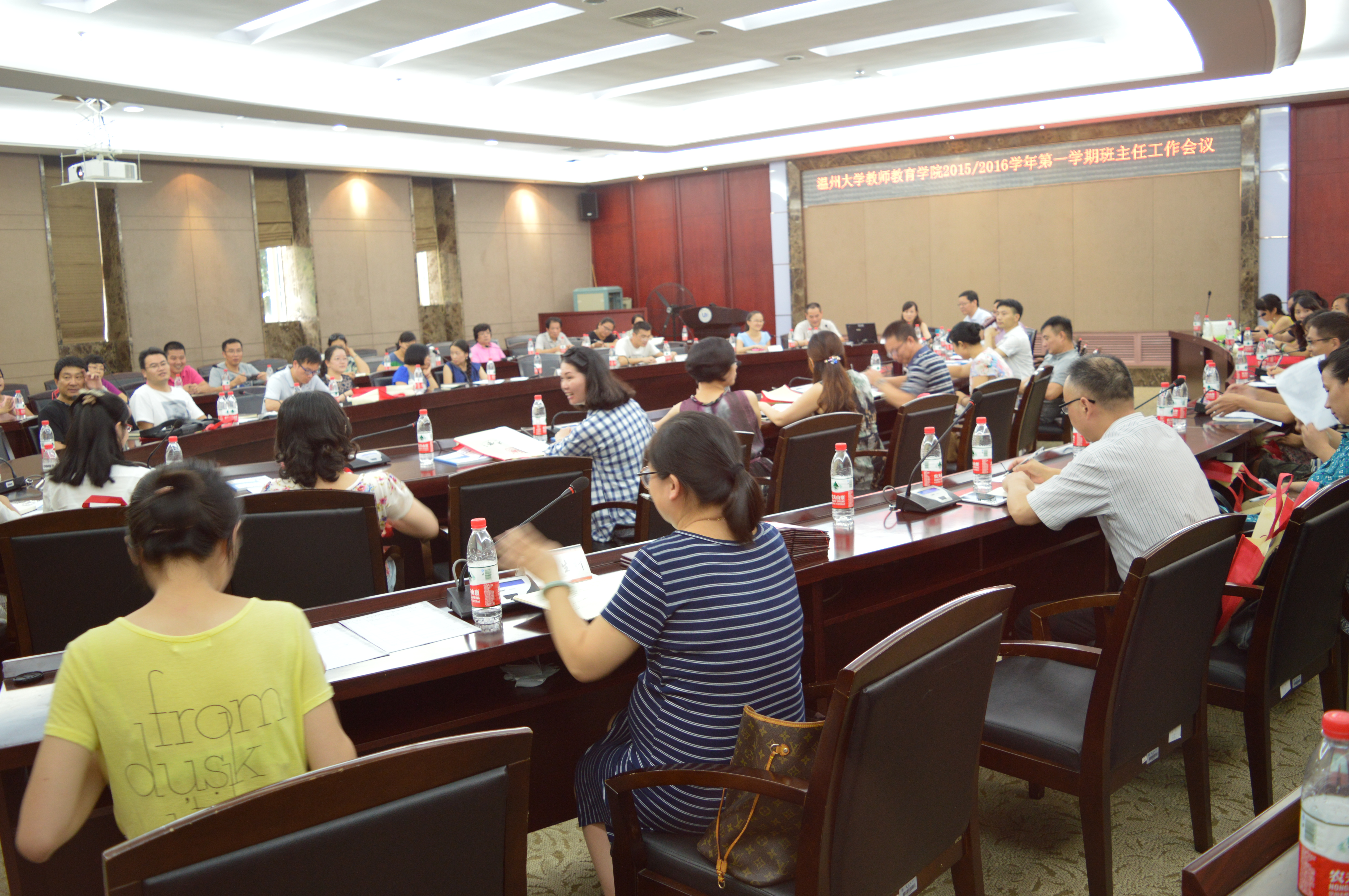 于2015年9月4日召开了新学期班主任工作会议,学院院长郑信军、党总支书记杨立淮、副院长彭小明、党总支副书记杨丽君,学院2011级—2015级所有班级班主任及教学科、学生科工作人员近60人参加了会议,会议由杨丽君副书记主持。