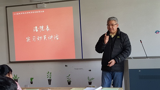 的学子,也要时刻以一名准教师的身份要求自己,遵守实习学校的规则制度。潘院长再三叮嘱实习生们注意实习期间的个人人身安全和财产安全问题,爱护实习学校的同学,尊敬师长,虚心请教。