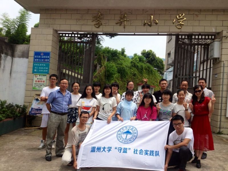副院长彭小明、党总支副书记杨丽君、实践队指导师陈仁和等老师来到偏远的文成县李井小学慰问坚守在那片天空下的守蓝实践队,并给队员们带来水果等慰问品,与队员们一起愉快品尝学生们亲手制作的十分简单却最是滋滋有味的午餐。
