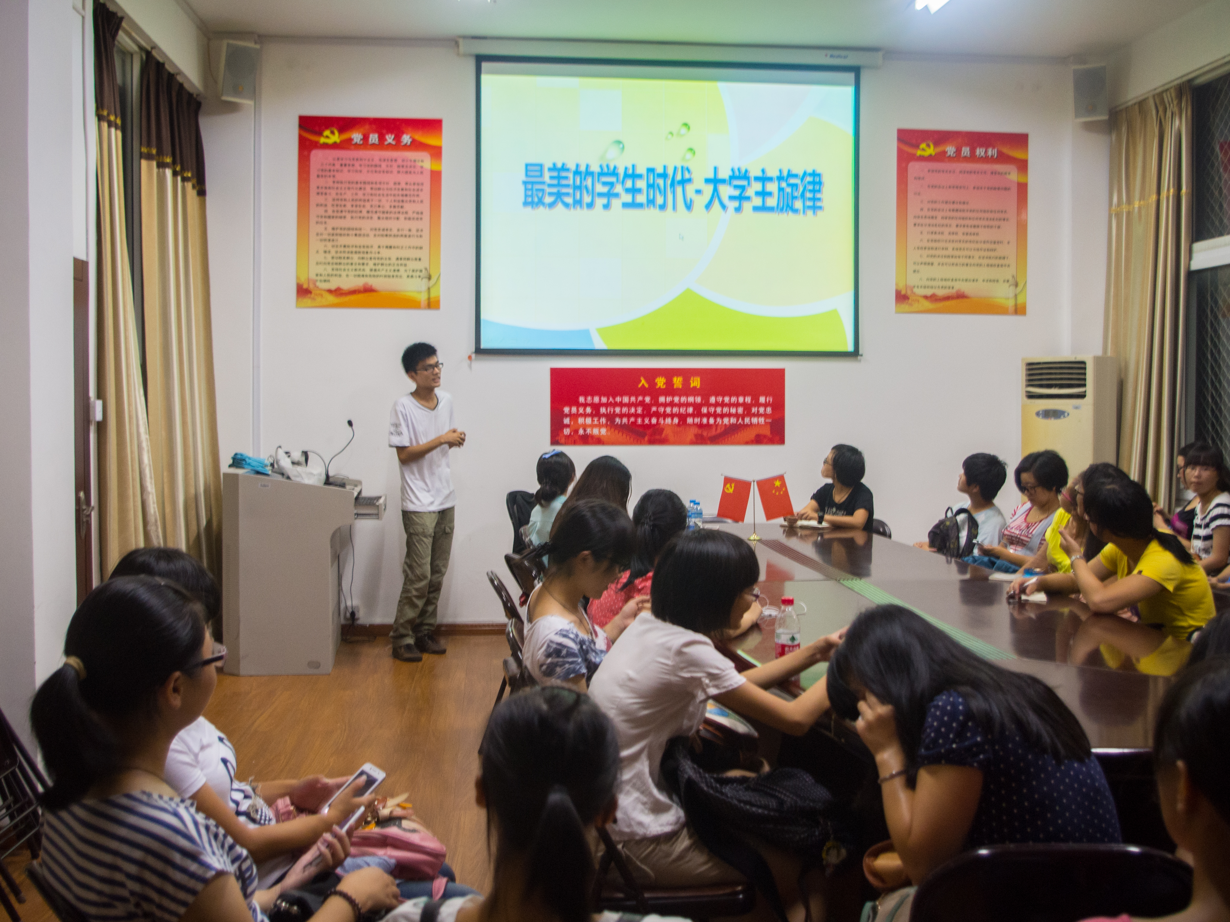 北校三号楼党员之家举行了一场“与理想对话”——13应用心理新生始业教育。10教本、10应心四位学长学姐与13级新生开展了深入交流。