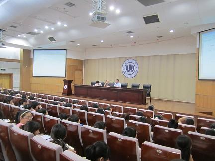 胡孙贵老师首先发言讲明了此次会议的议程和会议目的。接着,吕小君老师讲到,学院把集中见习改为分散见习不是说明学院不管他们了,他们只是希望可以达到更好的见习效果。为此,学院还特别制定了质量监控表。见习期间,每位同学都要和自己在大学的指导老师进行定期汇报,采用QQ或者短信的形式。学校指导老师也会定期和见习单位指导老师沟通,了解我们的见习和收获状况。见习方案是我们学院的老师花了很多心思制定的,我们一定要认真完成见习手册。