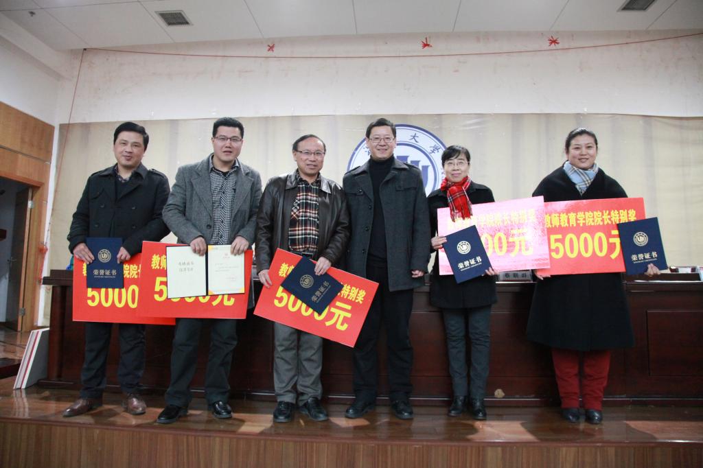 大会还颁发了2013年度“院长特别奖”及就业工作奖。张晓瑜老师、胡瑜老师、彭小明老师、郑薏苡老师和教育技术教学团队因在教书育人、科学研究、服务社会等方面取得了突破性成果,被授予“院长特别奖”。方建文、张新、黄亨奎、曹娟、翁鲜丽、陈继忠等六位老师及就业专职人员就业工作业绩突出,学院决定给予就业奖励。