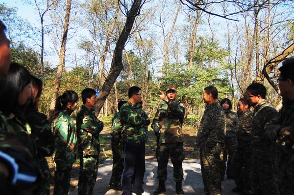 一路军歌,大家欢声笑语来到楠溪江狮子岩,午饭刚过,大家便迫不及待的进行了分组;所有参战队员来到丛林,齐刷刷换好了战斗装备,大战将至,气氛极度压抑……随着教官的一声令下,真人CS战斗正式开始!大家各就各位,有的担任阻击,有的担任冲锋,有的掩护,战场上枪林弹雨,“惨叫”声此起彼伏!队员们甘当炮灰,前赴后继,一波硝烟,不停地有队员被“击毙”退出战场。