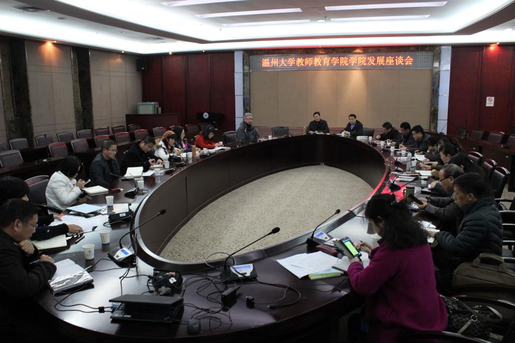 与会人员畅所欲言。蔡联群同志结合自己在国家教育行政学院三个月学习的感悟,指出,在当前高等教育蓬勃发展的形势下,地方高校和985、221高校相比,真正是“在夹缝中求生存”。如何打造核心竞争力关键就是要差异化发展。教学型院校和科研型院校并没有层次高低之分,他们的区别只体现在为教育对象提供的教育质量的高低。各位教师代表们也纷纷谈了自己的意见和建议:有老师认为人才引进工作是目前工作的重中之重,我们要真正走出去请进来,多渠道多形式引进人才“为我所用”,要做好人才的服务工作,要启动教师海外进修激励计划,要打造优秀团队。有老师针对学科科研工作提出了建议,要处理好科学研究“顶天”与“立地”的关系、短期措施和长期目标的关系,要在凝练方向、队伍建设和平台搭建上下功夫。有老师提到了“博爱雅艺”师范气质培育工作和教学工作的结合,认为师范气质是内涵,师范技能是平台,要抓好师范技能训练工作,并有老师分享了自己在本班学生中试行的师范气质培养计划。有老师对服务地方工作提出了自己的见解,认为老师们不能简单地把继续教育或服务地方工作认为是创收,而是要把这项工作作为一个平台,积极走进基础教育单位,了解地方教育,研究地方教育,这样才是真正接地气的“教育研究”。还有老师就学生工作校友工作和就业工作发表了意见。