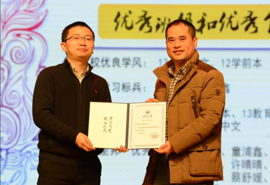 在学科与专业建设、教学工作、学生工作、文化建设等方面取得的可喜成绩,对获奖者和指导老师表示热烈祝贺,也对这些努力进取、爱岗敬业、对学院学校贡献突出的先进集体和个人,表示诚挚的谢意。“世界不曾亏欠每一个努力的人!”,最后郑院长预祝2016年全院师生能坚持奋发图强,再创新的辉煌!为了鼓励优秀老师和优秀学子,随后进行了学风表彰,教师泥巴影院