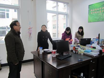 在走访的最后一站--安阳实验小学,彭院长先是听了一节实习生公开课;接着与李梁等实习指导师来到了安阳实小黄文罴校长办公室,与黄校长开展交流。彭院长代表学院党政领导班子表达了对安阳实小的感谢,随后,主宾双方对小教师范生的培养和供需问题作了进一步的交流。在轻松、愉快的交流结束后,各位领导、指导师和实习生拍照留念。
