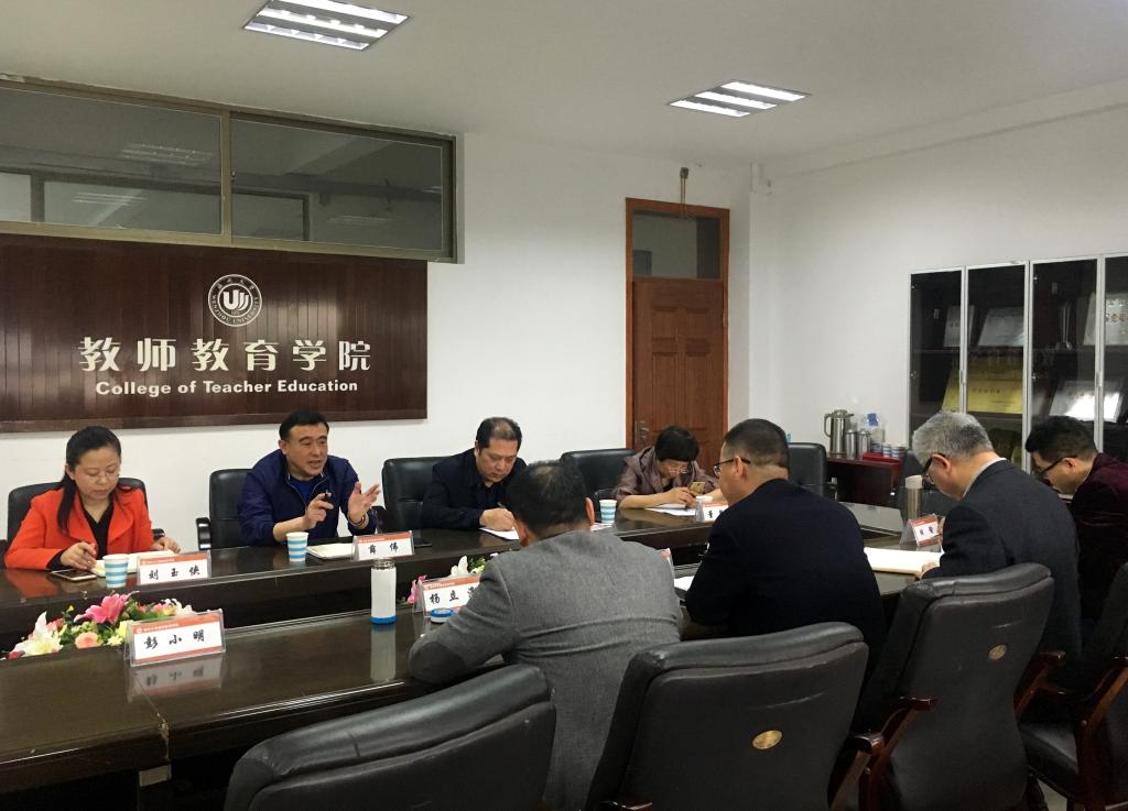 薛伟副校长听取汇报后指出,教师教育作为学校的发展特色,一定要办出特色。学院要高度重视一级学科硕士点的申报工作,一级学科硕士点是重中之重,要认真研究申报要求,进行准确的诊断和分析,积极做好各项工作。校地合作是对学科建设的支撑,也是对教师的锻炼,应该系统地推进。科研工作需要协调作战,注重协同创新。要高举协同创新旗帜,做好校内协同、院内协同、校际协同、校地协同,要从培养科研梯队的角度积极推进各项工作。要善于借脑借力发展,发展要创造良好的政策和生态。