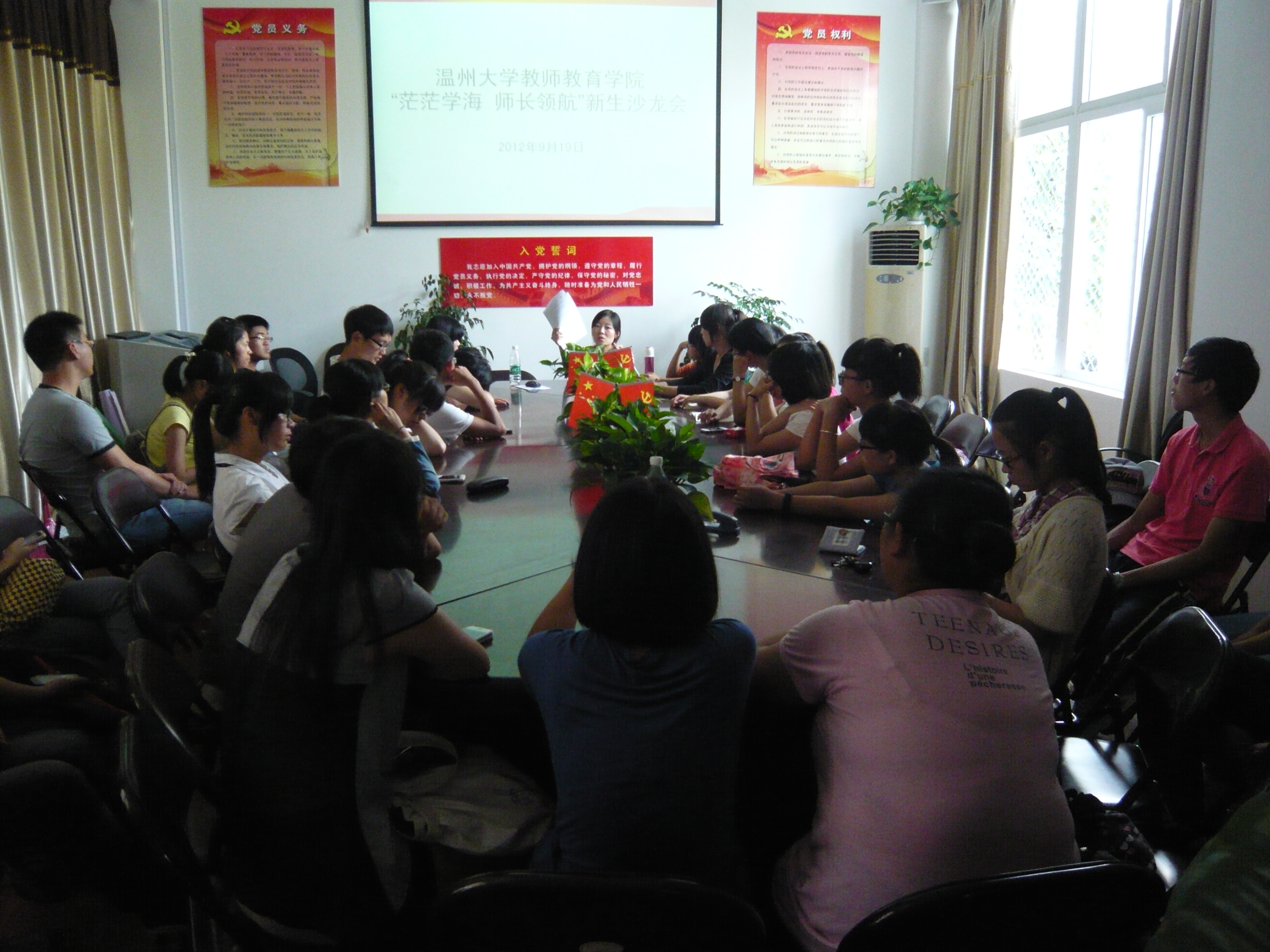 党员之家举行。09级应用心理学专业高璐同学和10级应用心理学专业应梦珍同学应邀参加了沙龙会。首先,应梦珍同学介绍了心理学专业班级的特色,以及如何结合专业特色开展班级建设。她从班委建设、四大活动、学生组织等几个方面,全面概括了班级建设的内容。09应心班的高璐同学做了精彩的讲话,引来了新生们的阵阵掌声。他从专业的角度,与大家共同解读了大学新生情绪管理密码。大一新同学,挥别了高中时期的规律生活,投入了“自由、自主”的大学生活,如何适应这样的变化呢?面对集体生活,如何处理好人际关系,如何管理自己的情绪呢?远离父母,如何排解思乡的困扰呢?竞争激烈,如何学会“减压”呢?如何面对失败而产生的挫折感呢?他以心理学专业的方式和方法,对同学们即将面对的问题提出了对策。许多新同学频频点头,获益匪浅。