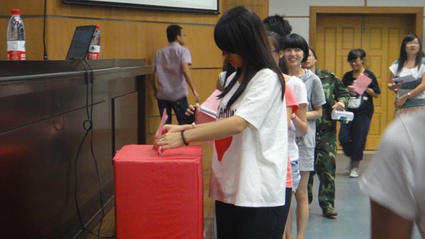 第一环节,管慧碧、钱宇苹、黄瑶驹、邱雨婷、王嫱、陈坚雪、宋雪莹、於久益、严仲等9名竞选人分别阐述了他们以前在工作学习等各方面的经历和收获的经验,也让大家体会到辉煌的背后的努力和拼搏。雨婷学姐的一番话让我们深深的敬佩,慧碧学姐讲到动情处不禁潸然泪下。其他的候选人也都纷纷表达了他们对于学生会建设的美好蓝图。第二轮的现场抽题回答更是精彩至极,充分考验了这些候选人的综合素质,让我们看到了他们身上的闪光点。到了最后一个环节,是现场的观众进行提问。面对同学们踊跃的提问,候选人也做了精彩的回答。