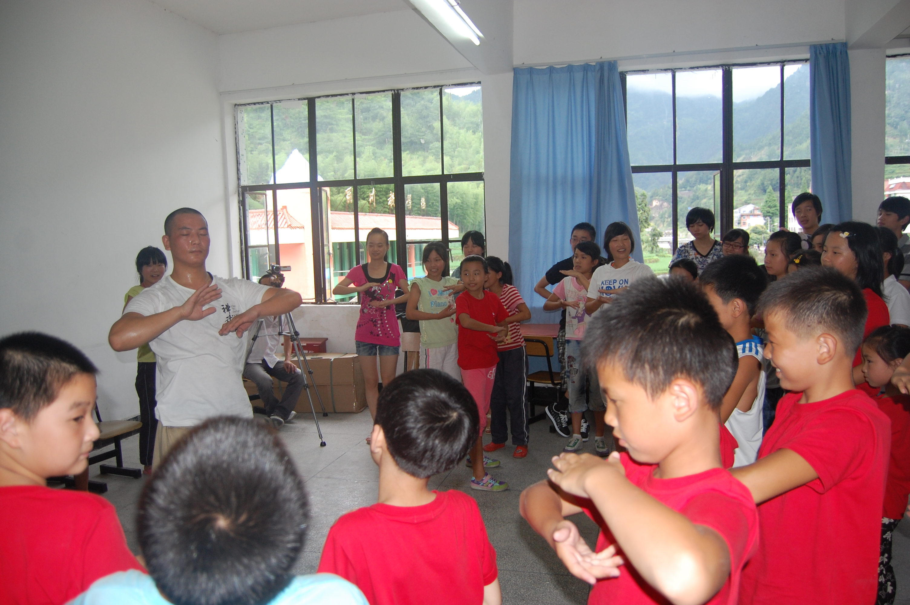 “牵手母语,情暖侨乡”暑期社会实践队来到枫岭乡学校的第三天。为让侨乡孩子了解中国传统文化——武术,实践队特地请来禅武道馆少林寺第34代传人释师父给孩子们进行了武术教学。