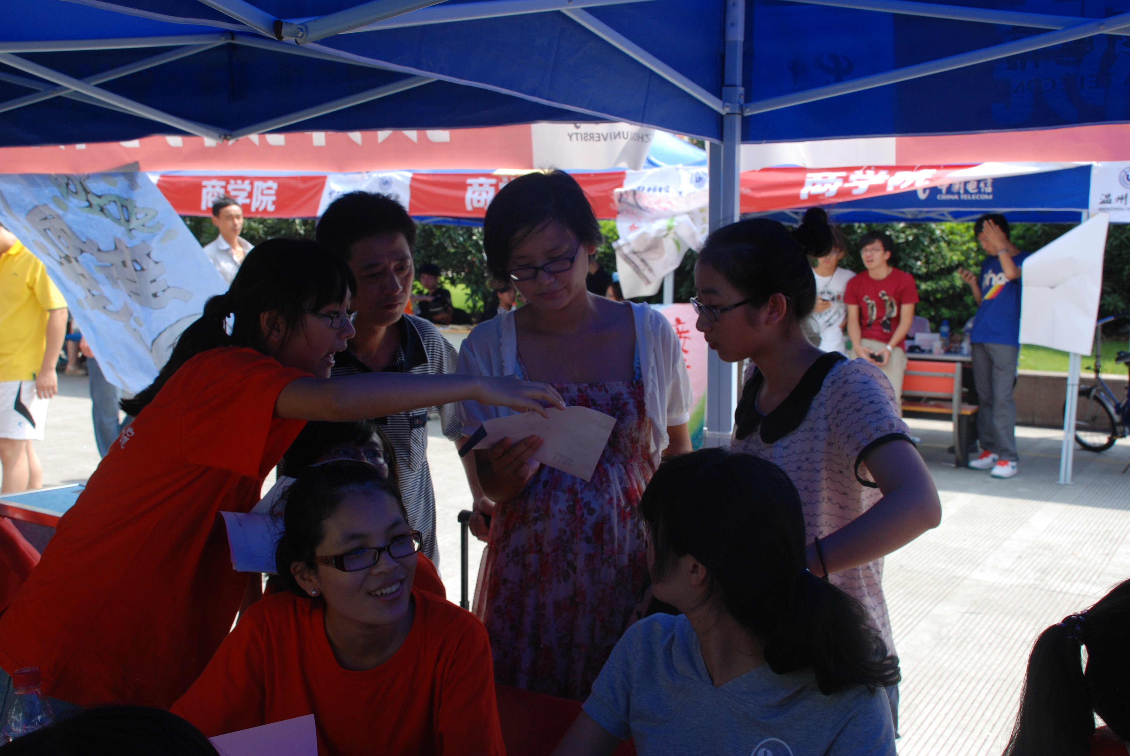 在报到现场,新生登记、物品发放等环节有条不紊地进行着。遮阳伞下,学院团委学生会成员和各学生党支部的成员,正忙不停息地为新生办理着入校手续,班主任和辅导员老师们则是耐心解答着学生和家长们的问题;各专业志愿者们为初进校的学弟、学妹们解答疑问、引路、提行李,提供各项热情周到的服务。