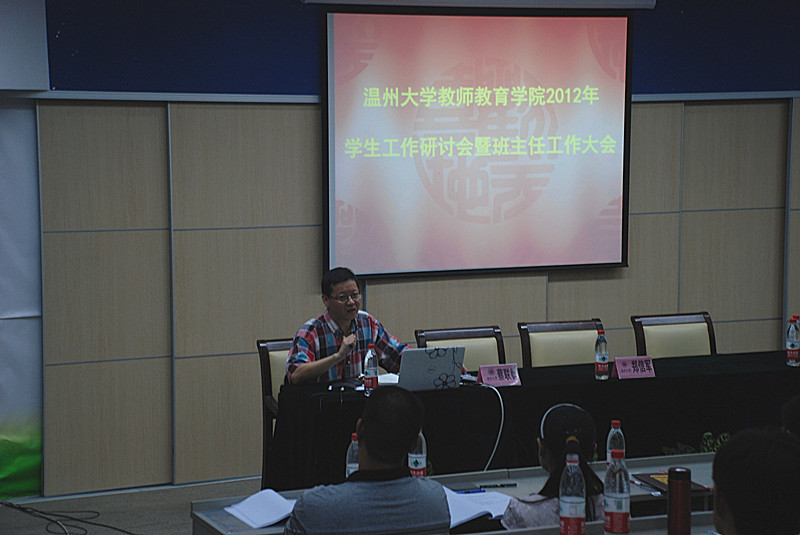 学生处王定福处长为大家解读了“学区制教育管理模式的改革方案”。他从“学区”概念的由来、温大学区制教育管理模式改革方案的构建、学区制改革所面临的现实挑战以及相应的对策等四个方面,向各位老师清晰地解读了学区制改革的内容。他认为,学区制改革是高校育人工作的一项重大探索,是一个新生事物,需要一个磨合、调整的时期,希望各个学院和各位老师都能支持这项改革,促进学区制改革目标的实现。