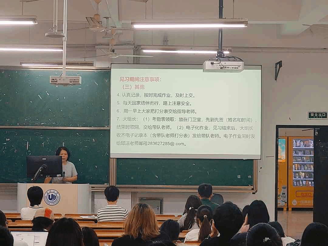 大会伊始,张晓霞老师围绕见习工作展开讲解。她就见习期间的注意事项进行重点强调。在纪律方面,她要求学生严格遵守幼儿园及学校的各项规章制度,详细说明了请假流程及不同请假时长对见习成绩评定的影响。