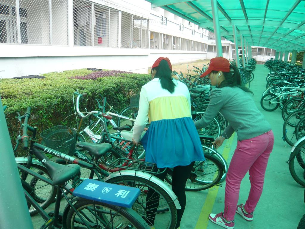 下午2点,活动准时展开。我们相约凉亭,在实践组长的讲解下,志愿者们以三人为一组,分配好各自的任务就开始了。溯初学区停车的场地还是比较多的,但是由于管理人员有限,就出现了自行车摆放不正确的情况。许多自行车停在了黄线外,这破坏了原本的和谐,我们的志愿者们马上进行了纠正。学区的卫生情况还是做得很好的,我们志愿者走了很多地方也没看到什么垃圾,这让我们感到骄傲。