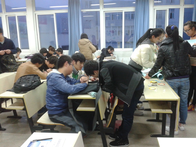 傍晚六点整,同学们准时来到教室,每位同学都领到一张圆形纸片,用来写祝福语。不一会儿,现场的气氛就热闹起来了,大家随即展开热烈的讨论,各抒己见。有的同学一气呵成,短短几分钟便写了长长一段话,却仍然感到意犹未尽,也有的同学只写了短短几句话,言简意赅,却也是寄托了满满当当的对于新泥巴影院