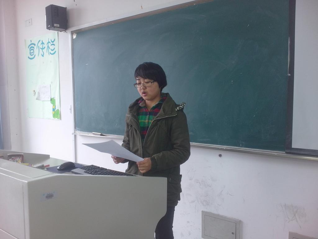 2013年3月28日上午,11小教中文班在北校3幢405教室举行了本学期第四次班级读书会,本次读书会由顾珊同学主讲。