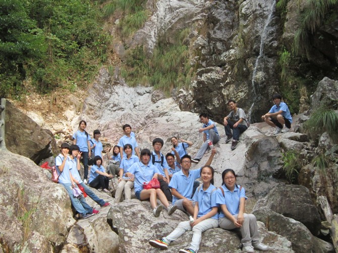 刚开始山脚下还有瀑布、水潭这些的,没想到越往上越是干旱。原本对那牌子上写着的“离原始林还有5千米”字样没什么感觉的,可当我们到达第一个亭子休息时,有人告知离目的地应该还有一半的路程,我突然有种绝望的感觉。回想刚刚走过的路,也是用小时计算的啦!更悲剧的是,我现在包里仅剩四分之一的汽水和一个苹果是可以解渴的。前路漫漫,我们仍要前进。到达第一个分岔口时,我们又被告知了一个如雷贯耳的消息,我们可能还有3千米左右的路程,这还不如刚才那个还剩一半呢。不过这些都还只是小意思,后来我们还被告知可能迷路了!整整在山上绕了一个大圈。