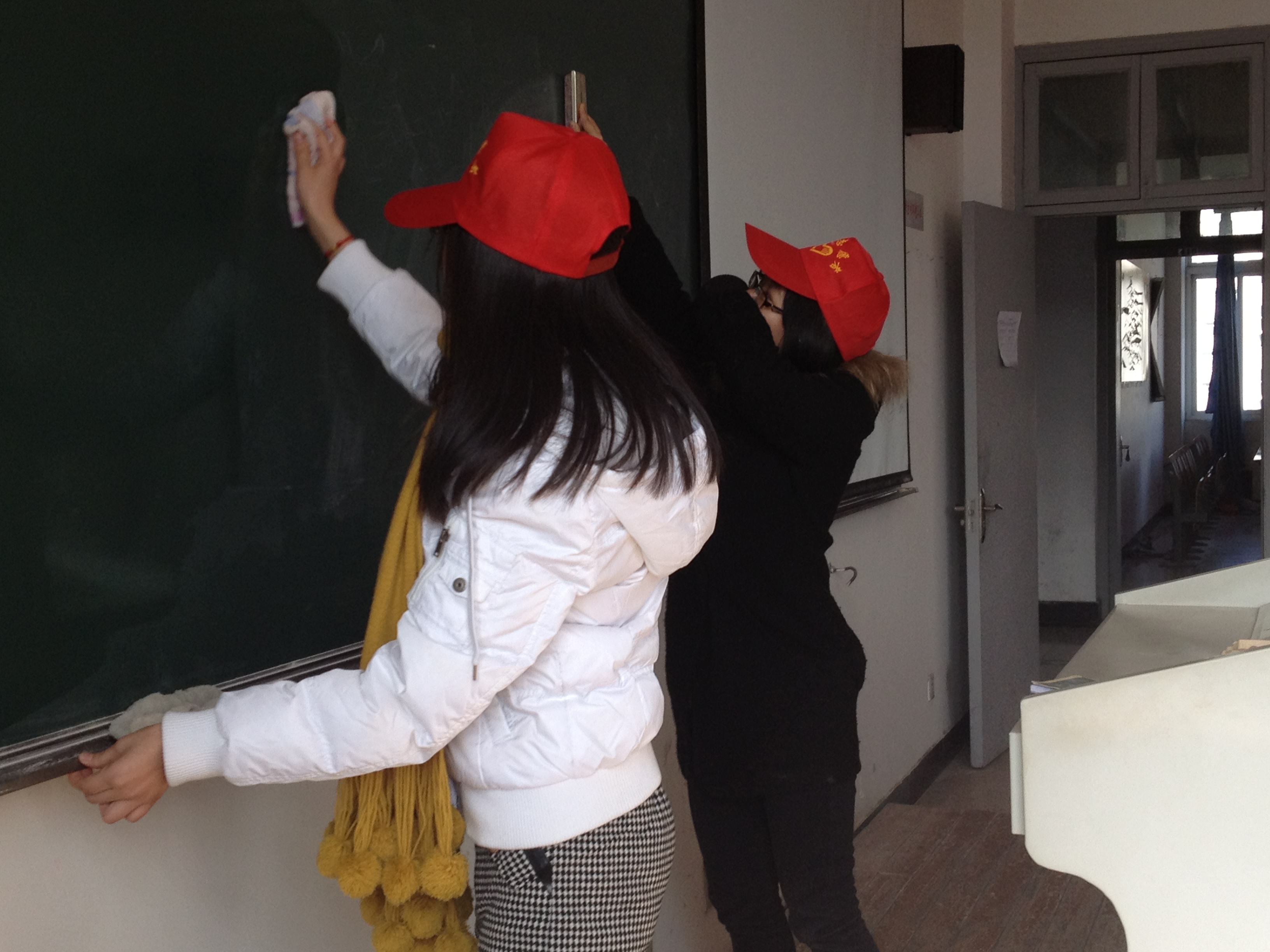 在我们班实践组长提前通知下,大家事先准备好了抹布等打扫工具。到了预定时间,我们都兴冲冲得去了三号楼。几个人一个教室,大家分散开来进行清扫工作。有的同学拿着扫把清扫桌子里深藏的垃圾和地面上的纸屑;有的同学拿着自带的抹布擦黑板;有的同学整理讲台等等。总之,所有人都在认真得当一名值日生。一个小时过后,凌乱的教室变得整洁了。虽然在这么寒冷的天气洗抹布是一件痛苦的事,但想到同学和老师们因我们而变得整洁的环境而感到舒适时,我们的心是暖暖的。