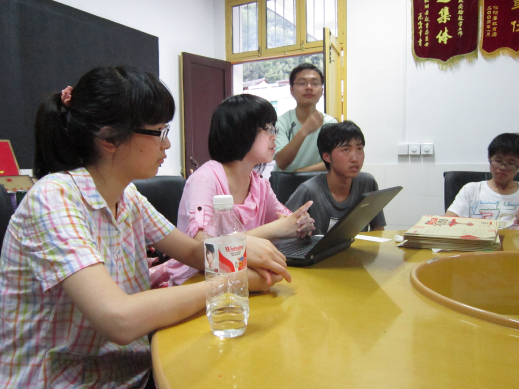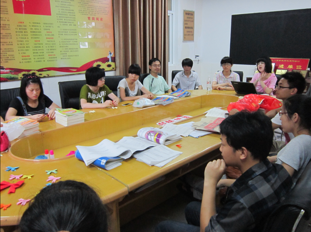 会议第一个需要征求大家意见的问题是汇报演出的地点,上届的地点是在乡里的一个舞台,但是这一届因为与乡里的沟通不是很顺利。所以,我们这一届的地点不能再定在那一个舞台了。那我们最后表演的地方就需要讨论了。大家就这个问题各自发表了自己的想法,最后决定在学校的操场上进行,操场上地方大,容得下我们和所有的小孩子。会议的第二项就是安岱后的问题。会议决定,我们于7月11号早上8点半出发去安岱后。在那里停留一天,期间,我们将会对我们的学生进行家访。下一项是调研活动的开展,我们决定对中高年级的孩子们进行问卷的调查,在对所有的反馈做了整理和分析之后,再着手开始做调研报告。会议的第四项是关于明天的时间安排问题,由于明天是小孩子们回家的日子,所以明天下午的上课时间要提前到12点半,好让所有的孩子们都能赶上3点半的班车,不然错过了,就没有车回家了。会议的最后一项是上一届的陈巧军学长发表感言,学长给我们传授了一些上一届的经验,比如说,我们要对所有乡里的居民有礼貌,要主动打招呼。学长表示,上一届有个孩子本来成绩很差,英语只考八分。通过队员的鼓励,这一次我们再过来的时候,家长和老师都反应他过去一年学习很认真,英语成绩直线上升,能考到八九十分了。学长说,我们在这里上两个星期的课,可能不能让小孩子们真正学到什么,我们能给他们留下的就是教给他们一种精神,一种努力学习、激流勇进的精神。以及赋予他们一种终能走出大山的希冀。