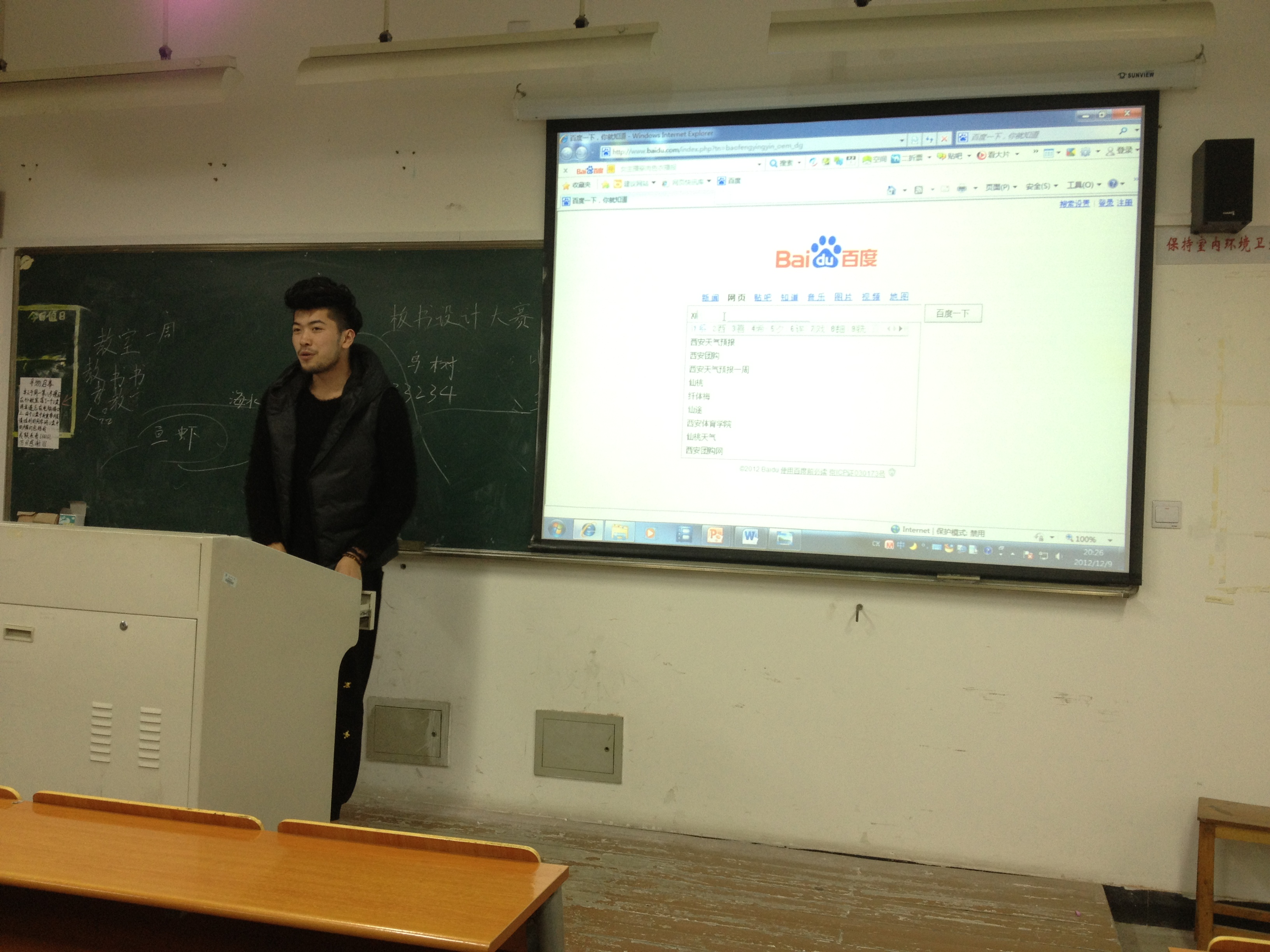 2012年12月9日晚,11小教中文班在北校3幢410教室开展了以“寻找身边的榜样”为主题的12月团日活动,此次活动由廖瑶瑶同学与何逸颖同学共同主持。祝好好学姐、王怡璇学姐、陈占挺同学也参与到了本次活动中,与11小教中文的同学们一起分享了他们的青春点滴。