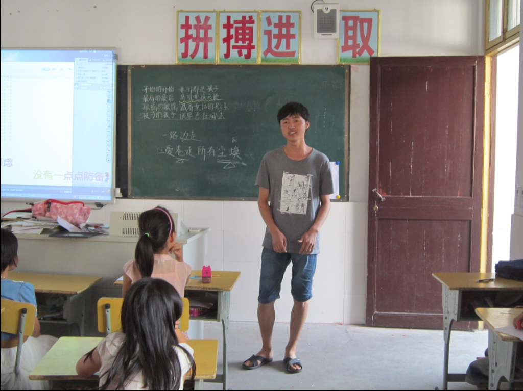 安民·萤光暑期社会实践队为安民乡中心小学的孩子们上课的第四天,今天中年级的最后一节课是音乐课,这节课是这些天最特殊的存在。