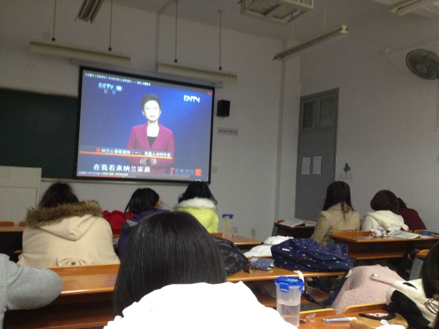 铃声之后,同学们开始认真地观看视频。大家都沉浸在在杨雨教授精彩的演讲之中,感叹着纳兰性德丰富而又跌宕起伏的一生。