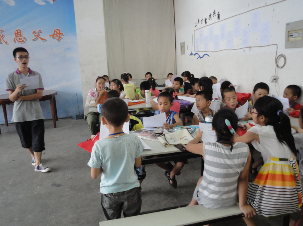 在今天,实践队还建立以一个新的管理制度——星星评比制。具体地来说,是每两天会奖励每个按时到出勤,遵守纪律的孩子一颗星星。之外,对于一些表现特别优异的孩子,队员们会额外地奖励星星表示鼓励。比方说,今天有一个男生主动为队员老师登记签到,为老师分担工作。队员们就奖励个一个星星来表扬这个男孩。每个孩子得到的星星都会画在一个公示栏上。这样的制度极大地提高了孩子们学习的热情与活动的积极性,使课堂的气氛变得更加热烈起来了。