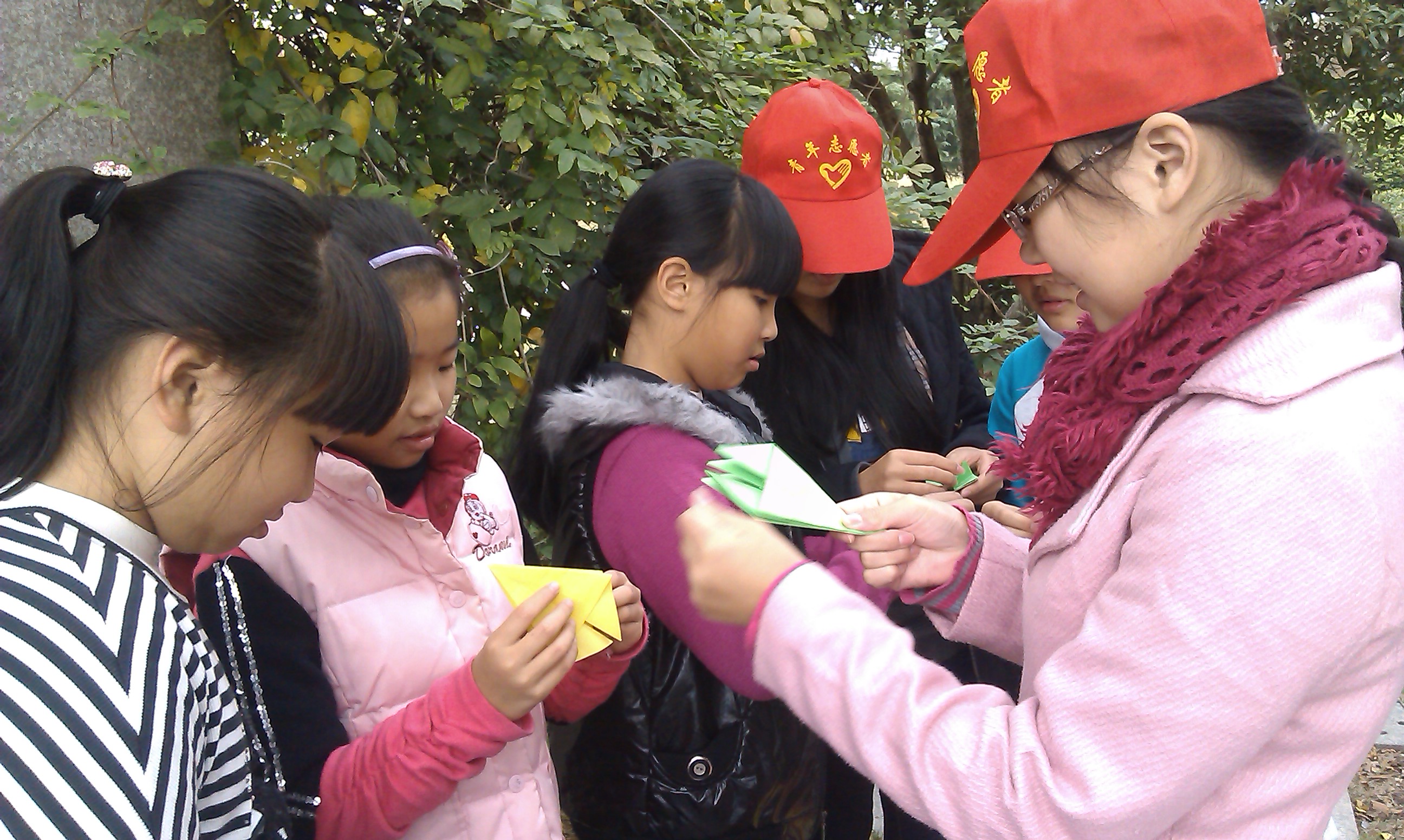 2012年11月24日,11应心班的八名志愿者聚集在学子广场长廊,折各色的千纸鹤、百合花还有心,并把我们的成果也是心意送给路人,让大家在感恩节里收获祝福。