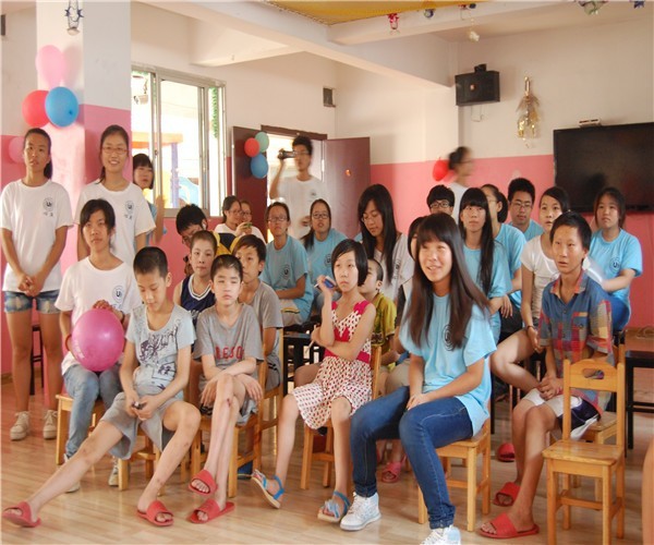 这次告别仪式总共分成两个部分。首先是实践队连同泥巴影院 阳光同行实践队为救助站的孩子们举行了一场简单温馨的联欢会。温暖友爱的手语,优美动人的舞蹈,激情四射的歌声,生动有趣的游戏,使得那掌声,笑声,欢呼声在那一方小小的世界里此起彼伏。