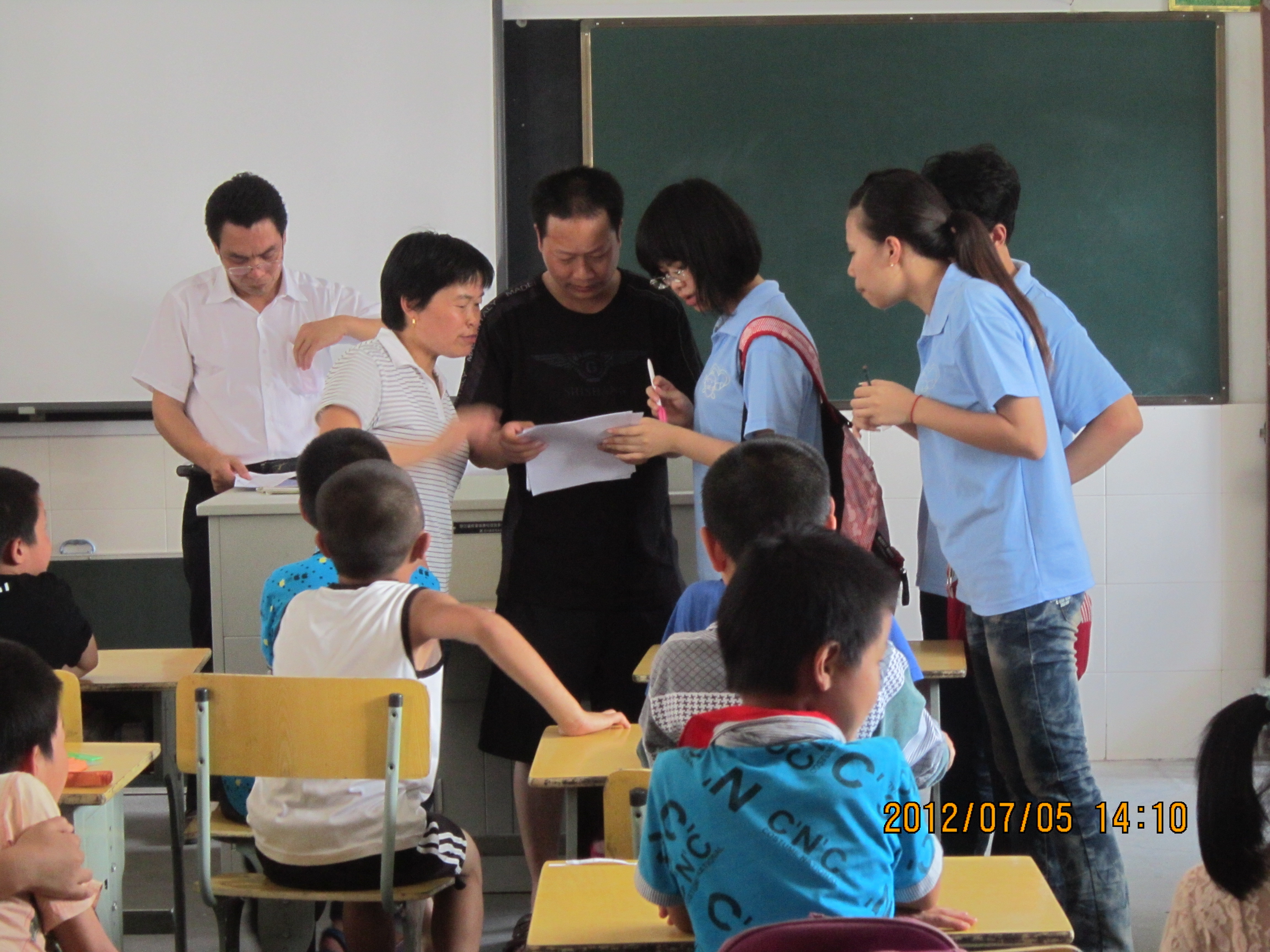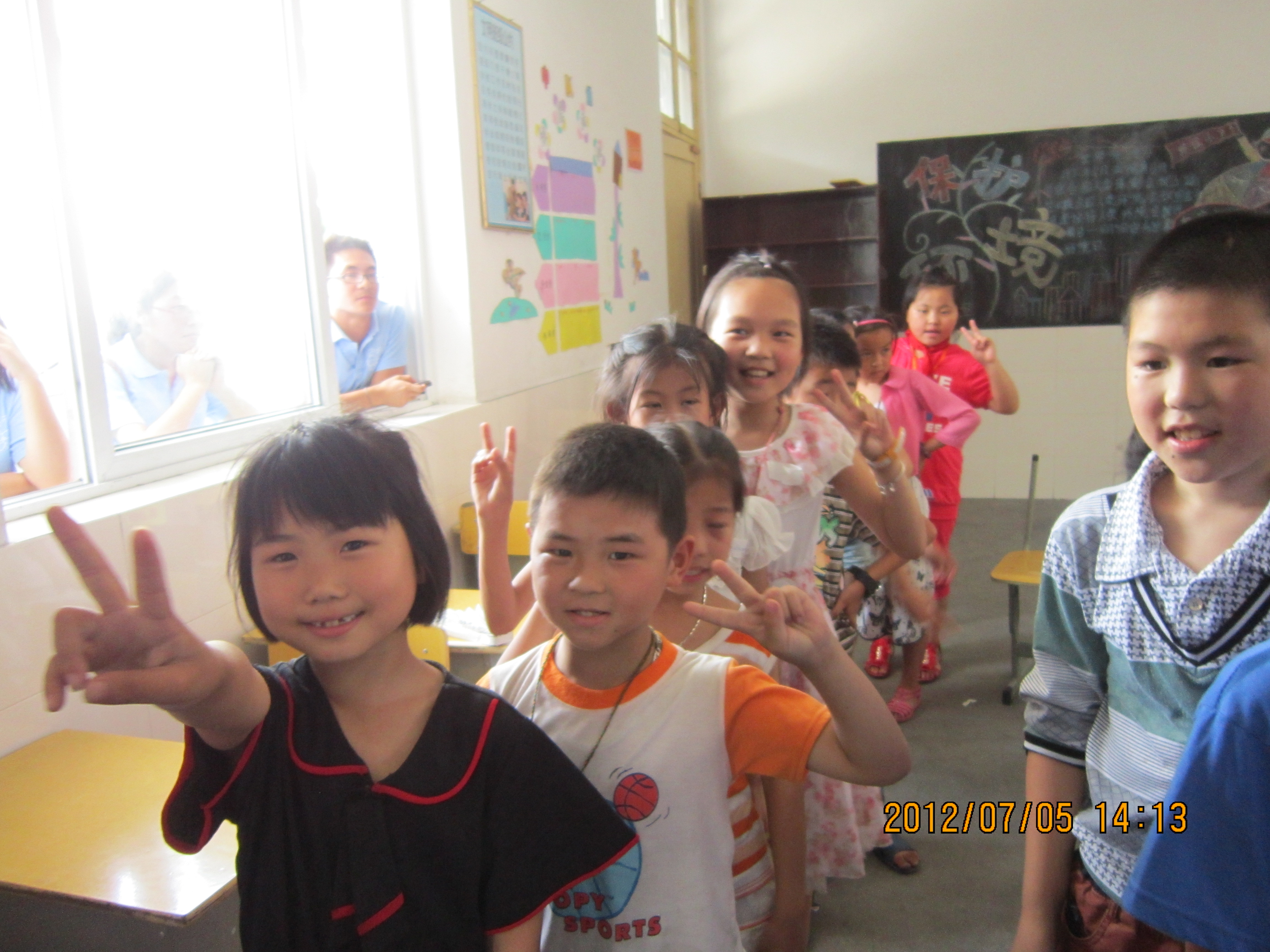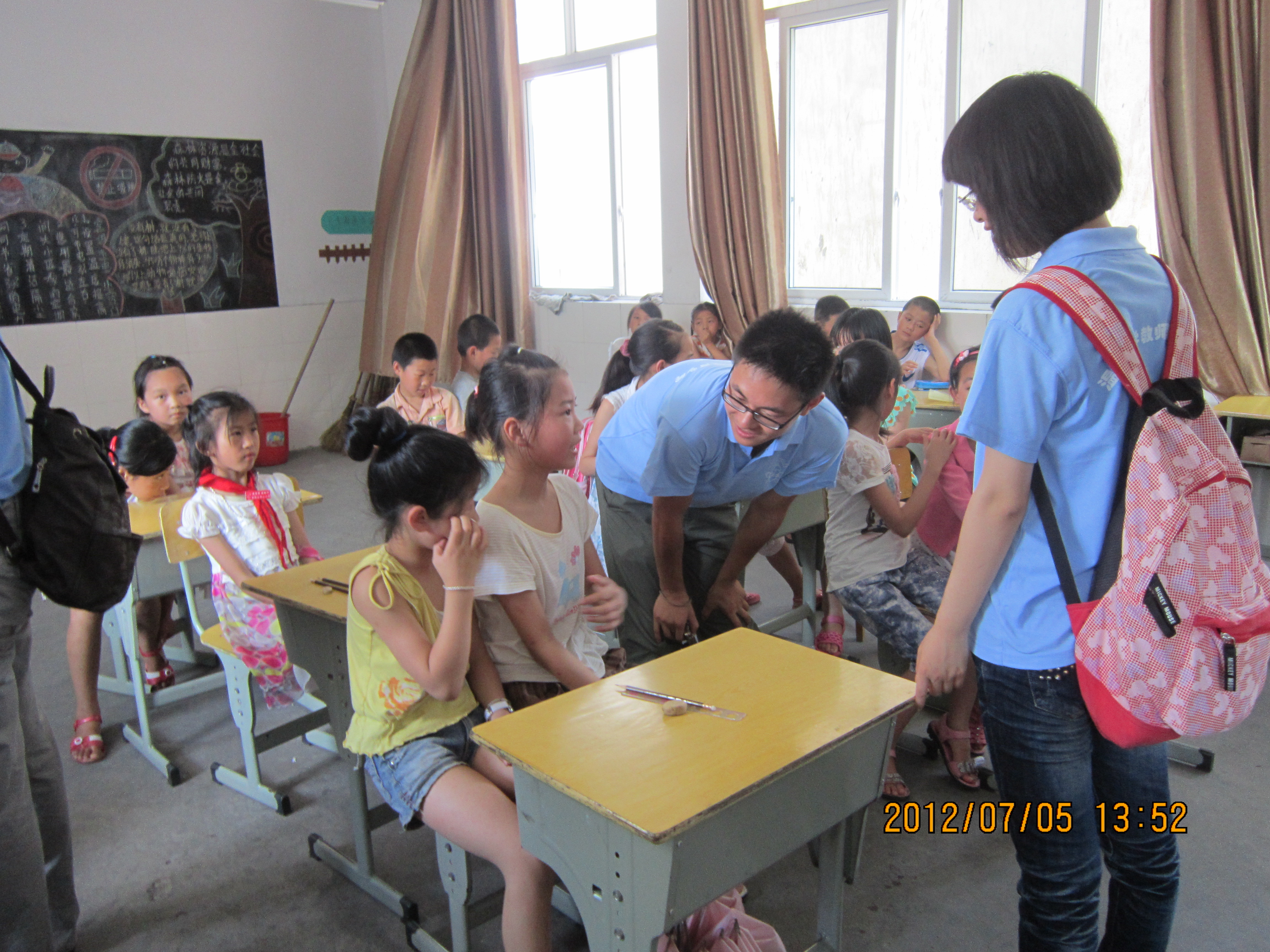 一到达安民小学门口,很多小学生就团团围住我们的车子,他们都非常热情地帮我们提行李。那里的环境真的很好,可谓是真正的“蓝天,白云,青山,绿水。”我们在放下行李之后就去吃饭,吴校长帮我们在学校门口张罗了一大桌子菜,十分的美味。吃过饭,我们去学校集合。一路上许多小学生喊我们老师,对我们敬礼,缠着我们问这问那,让我们瞬间就有一种是真正的老师的感觉。之后,我们在二年级的教室里集中。首先,吴校长和学生们对我们的到来表示欢迎。再者,吴校长对学生们提出了三点要求,让他们要注意安全,认真学习,听老师的话。最后,在吴校长的帮助下,我们初步认识了学生,并且按照学生的年龄将他们分成了低,中,高三个年段。为每个年段都配备了一名班主任,照顾他们的生活。在与学生们进行了初步的接触之后,我们就将我们的全部心力都投入到了各自所教的学科的备课当中,力图将最好的呈现在学生的面前。