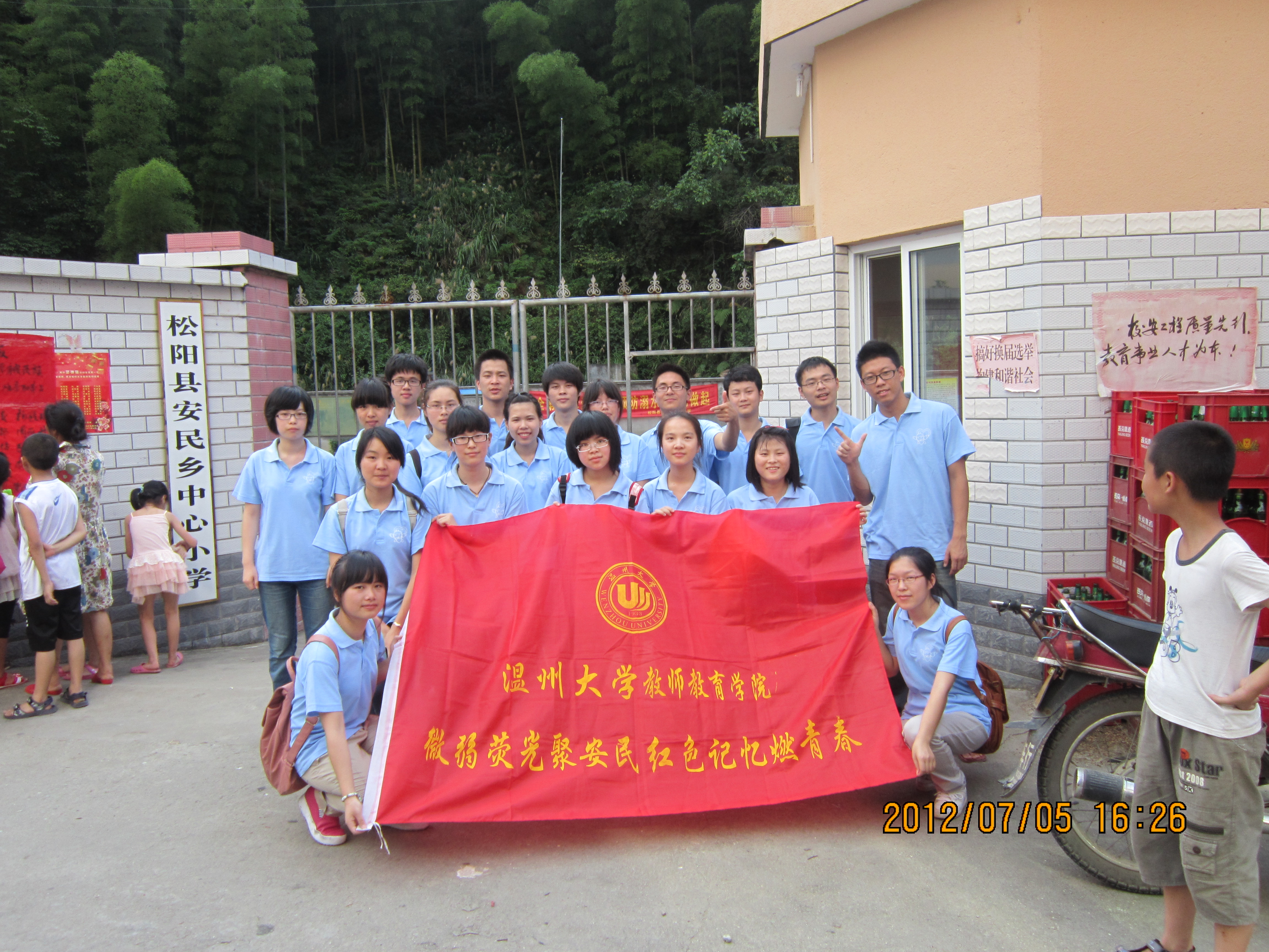 安民·萤光暑期社会实践队终于踏上了征途,在我们出发之前,吴丽洁老师过来与我们进行了交流,嘱咐我们一些必要的事情。在与老师道别之后,我们就正式出发了,经过了四个小时的旅途,我们到达了松阳县安民乡中心小学。
