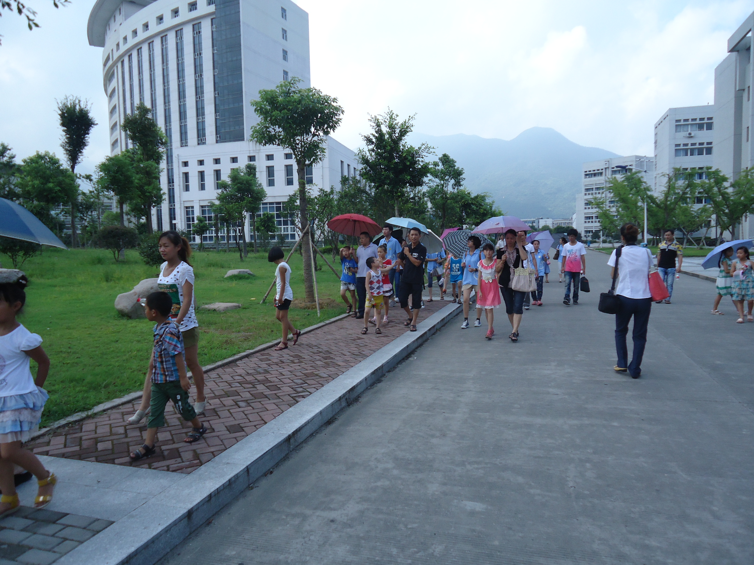 早上七点多,伴着徐徐清风,队员们早早在瑞立集团的老食堂门前等待家长及小朋友的到来。八点半左右,所有的人都到齐了,由队长谢晓蒙清点人数,交代到校后应该注意的各种事项。一切准备就绪,大家踏上了通往大学城的车子。一路上,小朋友们甚是激动,想象着大学的样子。