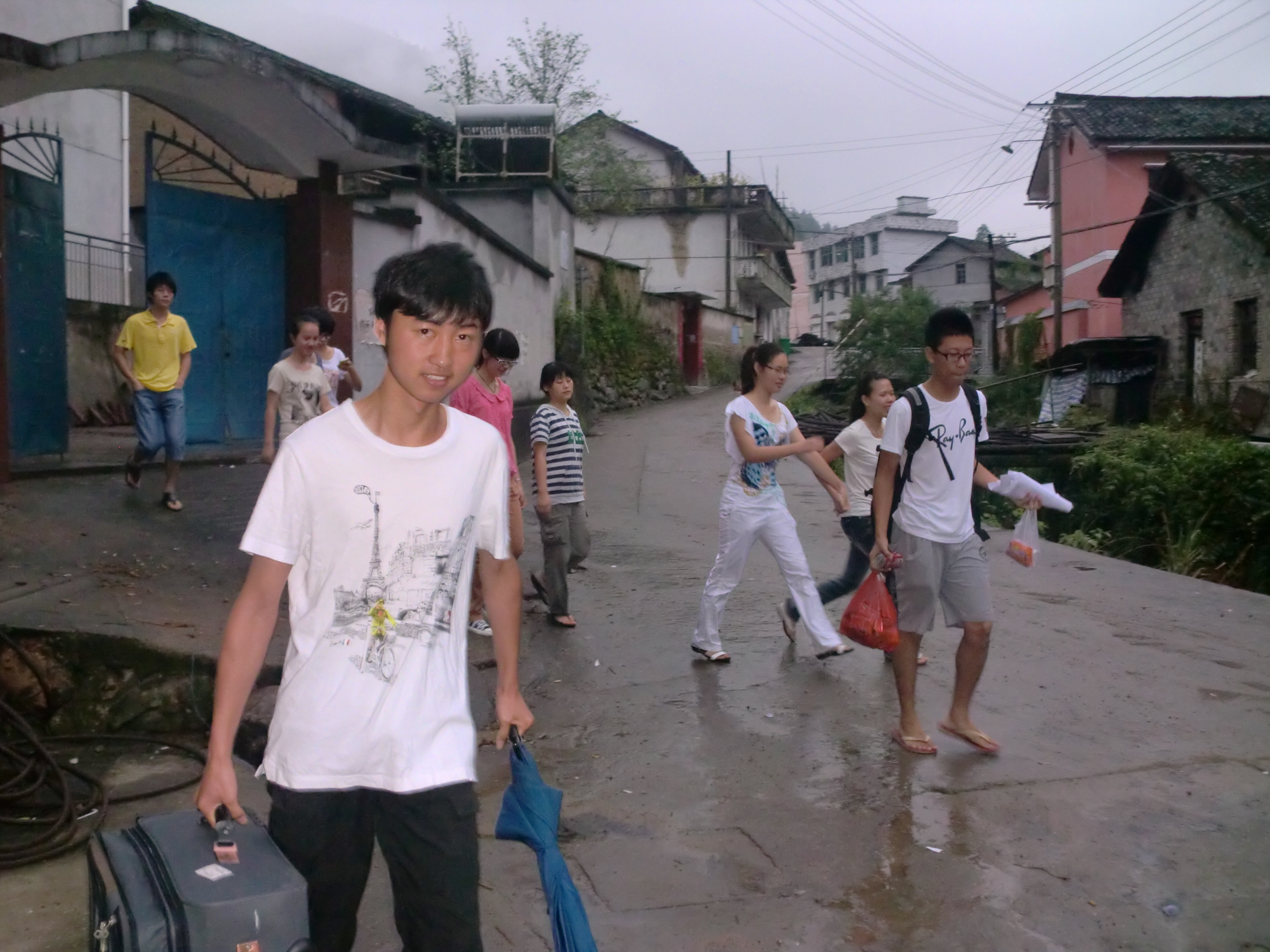 那条街,总是那么陌生,但那时,我们都留恋着她。她,让我们看见了安民孩子的活泼。孩子的懵懂。揉揉睡意的眼,还是抑不住感动——给队员们来了好几张合影——我们笑得都非常的开心——街上,早早的就有了我们这群孩子的孩子的欢声笑语。