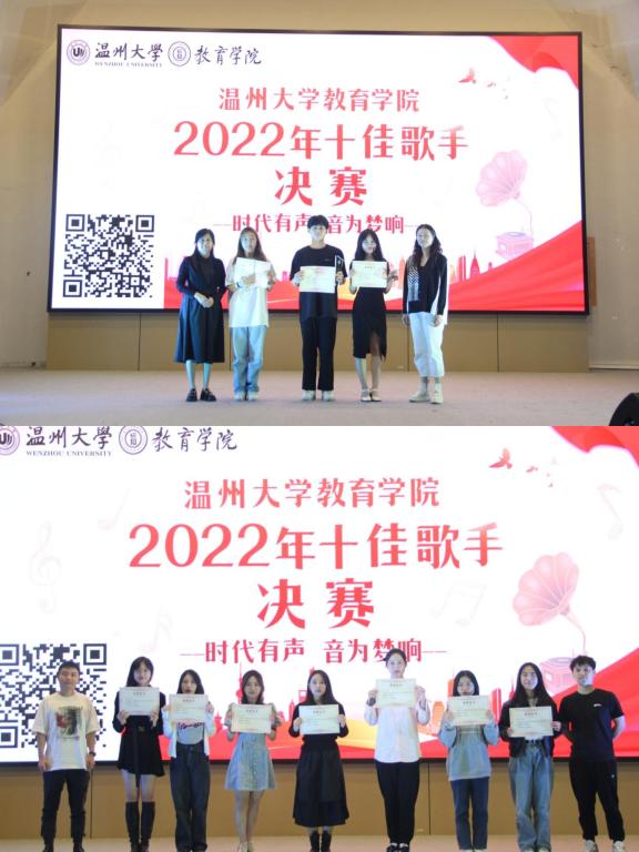 评委们细致的点评过后,主持人宣布了教院十佳歌手名单。温大泥巴影院 陈恩清老师和杨婧老师为前三名获奖者颁奖,邵胜男老师和杜俊一老师则为四到十名获奖同学颁奖。