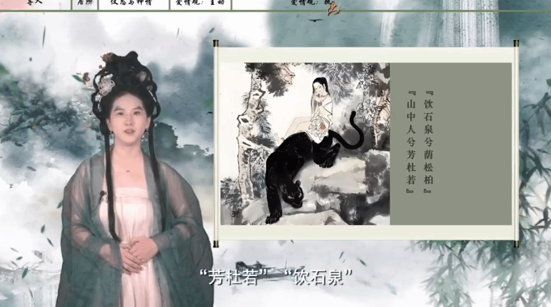 诗意讲解,贵在巧思独运。我潜心研读知网论文,遍览“诗教中国”历年佳作,以拓己见,期能别开生面。诗声不独存于纸上,我便于讲解之始,轻吟低唱:“若有人兮山之阿,被薜荔兮带女萝。”