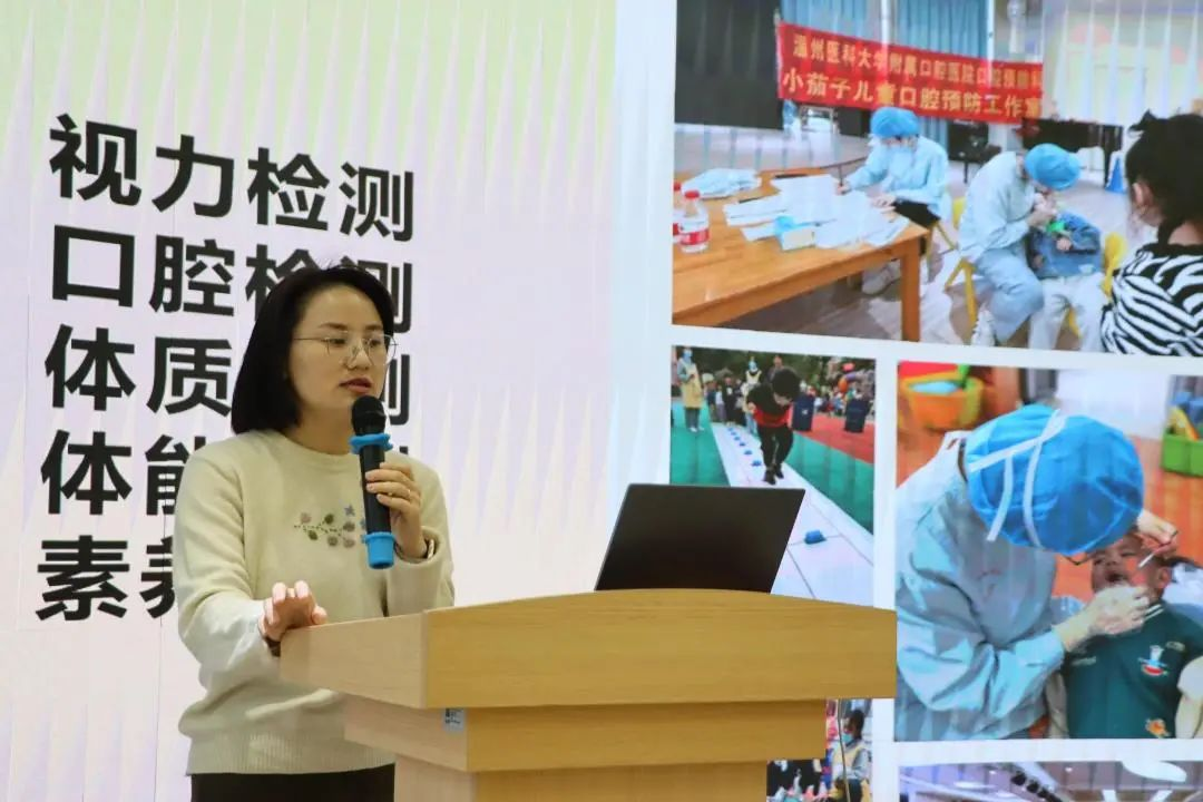 2023年3月28日,携春日的芬芳,学员们来到了美丽的泥巴影院 附属实验幼儿园。张曦副园长在经验介绍《数字赋能健康教育》中详细介绍了温大附幼的三朵云、幼儿健康档案、数据分析等版块内容,提出要让数据助力每个孩子的个性化需求,让每个孩子成为更好的自己。接下来的大班段健康领域集体教学活动《模糊的世界》和主题教研活动《云慧评:赋能幼儿营养健康素养发展》让学员们意犹未尽,随后在保教副主任吴艳霞、陈凤燕老师的带领下,学员们走进温大附幼的大环境,切身感受环境创设与办园理念的融合,也深切感受到温大附幼整个团队积极、精进的工作态度和专业素养。每一位教师身上显现出的教研思维以及工作激情也给学员们留下了深刻的印象。