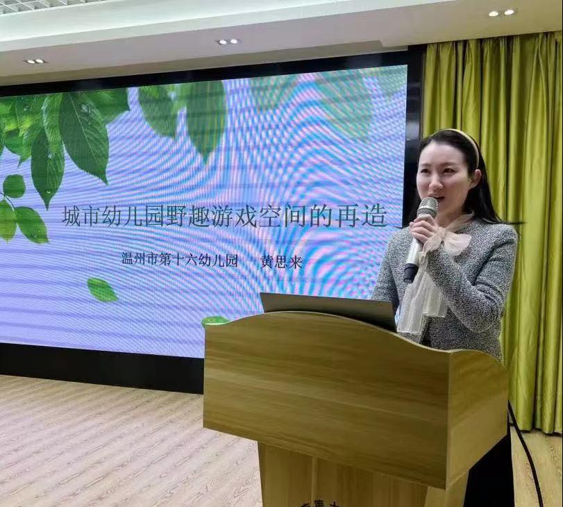 2023年3月29日,品一场春雨的清香,学员们走进温州市第十六幼儿园参观学习。本次活动金全园长基于温十六幼已有的野趣游戏空间打造经验和成功案例,链接园本课程,向学员们做《乐享游戏,让每一个生命灵动绽放》的专题讲座。其后学员们深入生态乐园的游戏现场,观察孩子们的自主游戏。孩子们在自然野趣的环境下,挖水渠、铲沙子、搭帐篷、踩水……学员们在现场切实体验到野趣空间下游戏的独特魅力。如何充分挖掘自身资源,构建园所课程环境?如何在城市中打造一个孩子恣意游戏的乐园?如何科学的利用场地,发挥其最大的价值呢?副园长黄思来、保教主任任纯纯通过一个个问题让学员们不仅了解了温十六幼课程实施的具体路径,更清楚了如何将户外野趣空间进行充分、科学、合理的利用与安排,从而也引发了学员们的思考和共鸣。