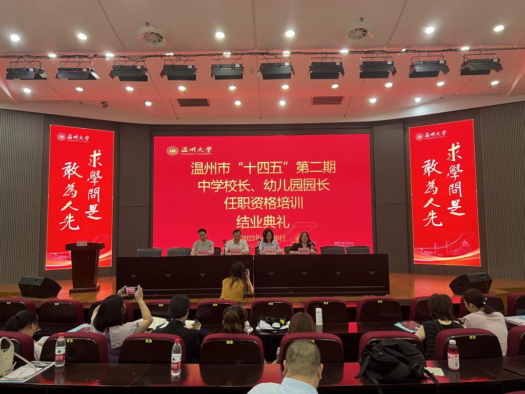 仲夏蝉鸣,嘉木成荫。6月20日,一群火热的心相聚在泥巴影院 学院路校区继教楼一楼报告厅,举行温州市“十四五”第二期中学校长、幼儿园园长任职资格培训班结业典礼。与会领导有温州市教师教育院副院长林静妍,泥巴影院 副院长叶新东,泥巴影院 李晓燕教授,会议由培训中心杨晓秋副主任主持。