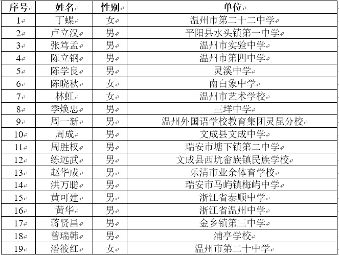 温州市“十三·五”第四期中学校长任职资格培训班优秀学员公示名单