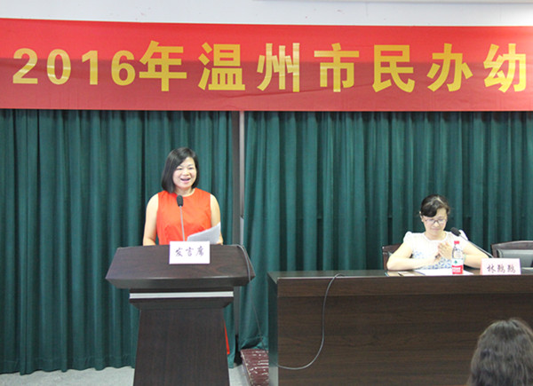 本次培训工作的严谨和周到,一方面也分析了温州民办教育的现状和未来。他提出“不扎根,就没有生命力”,要求园长们沉下心来做事业;“不嫁接,就没有竞争力”,要求园长们相互学习,取长补短;“不创新,就没有发展力”,要求园长们在创新中求发展,表达了温州市教育局对于民办教育的重视和期望。