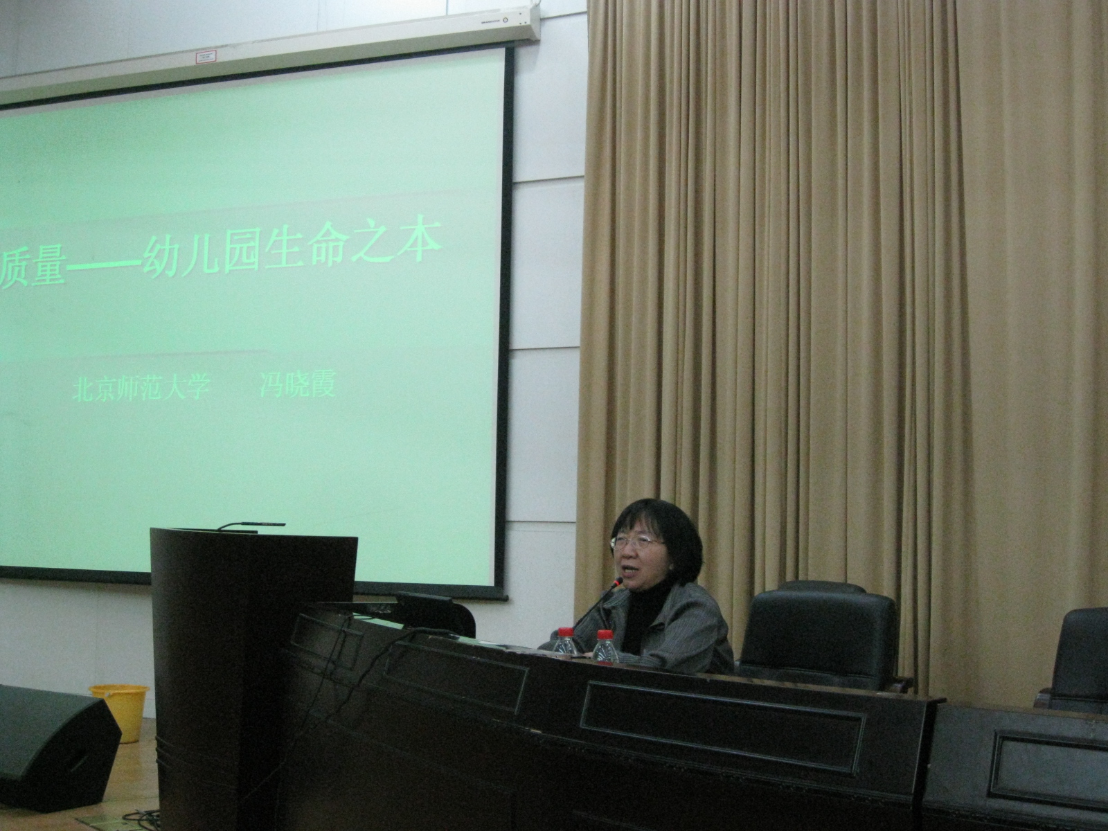 冯晓霞教授围绕如何理解幼儿园教学质量的主题,从幼儿园教育质量的构成:结构质量、过程质量和工作环境质量这三个方面进行深入地阐述,认为只要做好这三个质量就能保证幼儿园的教学质量,即幼儿的发展。冯教授联系幼儿园实际,通过经典案例的分析,加深了学员对学前教育质量的认识,开拓了大家的办园思路。许多园长课后纷纷表示冯教授的讲座很生动很贴近幼儿园生活,使人受益匪浅。