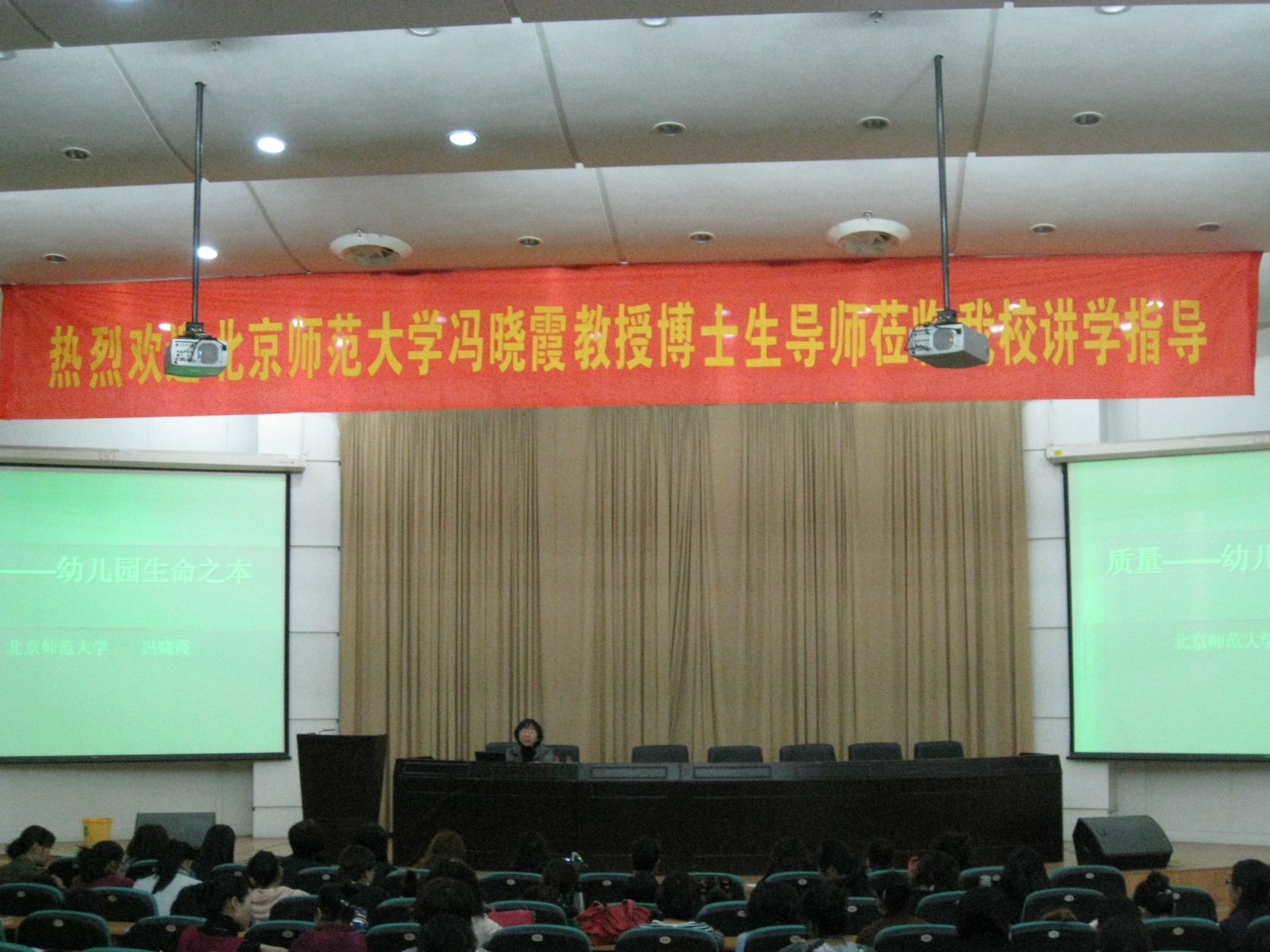 学前教育系博士生导师冯晓霞教授在学院路校区举行《质量——幼儿园生命之本》学术讲座,温州市第五期园长任职资格培训班全体学员参加讲座。