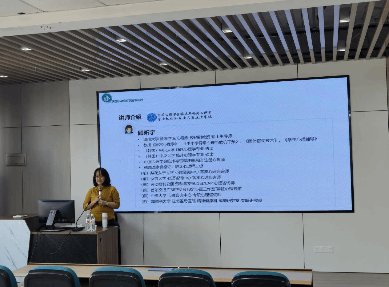 随后,顾老师重点讲解了心理危机的识别方法。他通过丰富的案例分析,帮助教师们了解如何从孩子的日常行为、情绪变化中发现潜在的心理问题。顾老师强调,教师应具备敏锐的观察力,及时发现孩子的情绪波动,并采取适当措施进行干预。