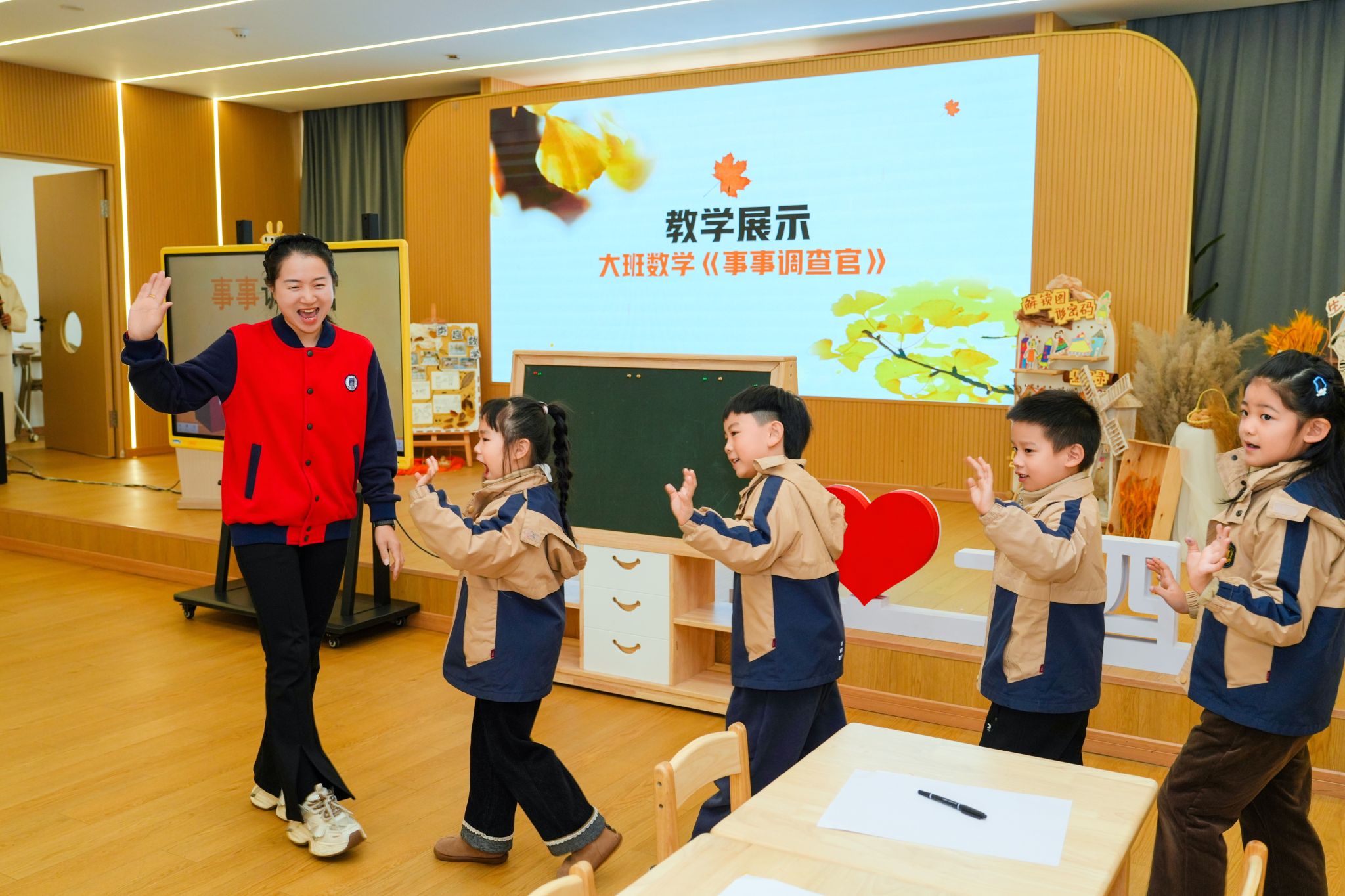 该园郑淑吟老师带着大班的孩子们现场开展了《事事调查官》数学活动。活动中,郑老师将数学知识融入趣味调查任务,引导幼儿在动手操作、小组合作中感知数学的乐趣。孩子们化身“小小调查官”,积极参与、主动探究,在游戏中提升数学认知能力,让学员老师们直观感受到游戏化教学的独特魅力。
