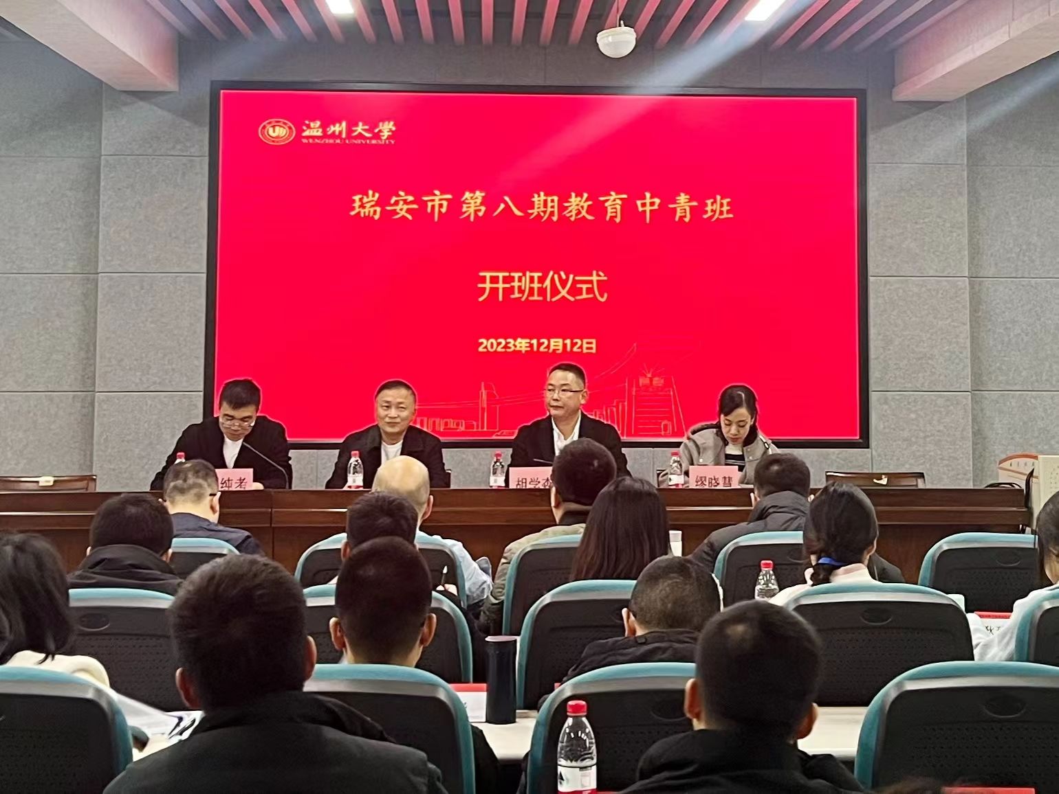 12月12日早上,瑞安市第八期教育中青班泥巴影院 培训开班仪式在泥巴影院 南校区泥巴影院 报告厅举行,来自瑞安市的五十多名中青年中层干部及学校副校长们齐聚泥巴影院 。泥巴影院 副院长叶新东致欢迎辞,瑞安市教育发展研究院培训管理科科长胡学森作开班动员讲话,泥巴影院 小学教育系邓纯考主任主持。