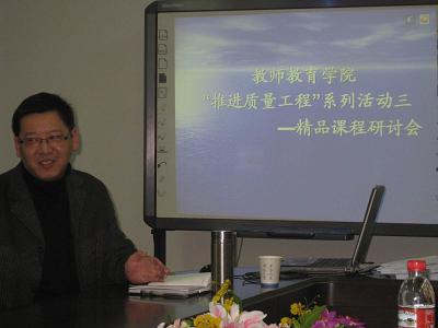 精品课程管理办理办法》中的指标体系和校精品课程的评审流程,同时就课程建设思路以及教学中应注意问题等和与会人员进行了广泛而深入的交流。