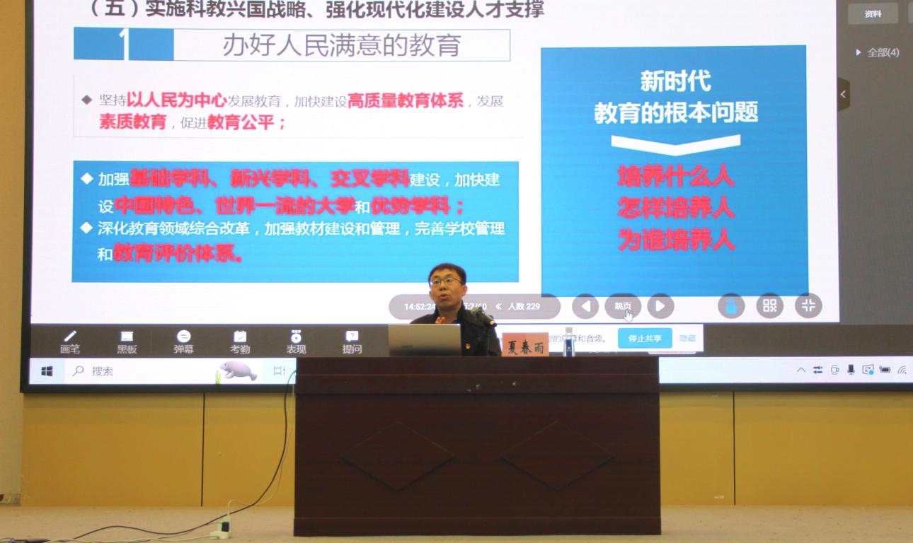 3月29日下午,泥巴影院 开展以《深入实施“双一流”战略 努力践行为党育人为国育才的高教使命》为主题的《形势与政策》课,泥巴影院 发展规划处处长、“党的二十大精神”泥巴影院 宣讲团夏春雨教授担任本次讲座的主讲人。学院党委副书记章园园主持,学工办辅导员孟江龙、李金伟一同出席了本场报告。