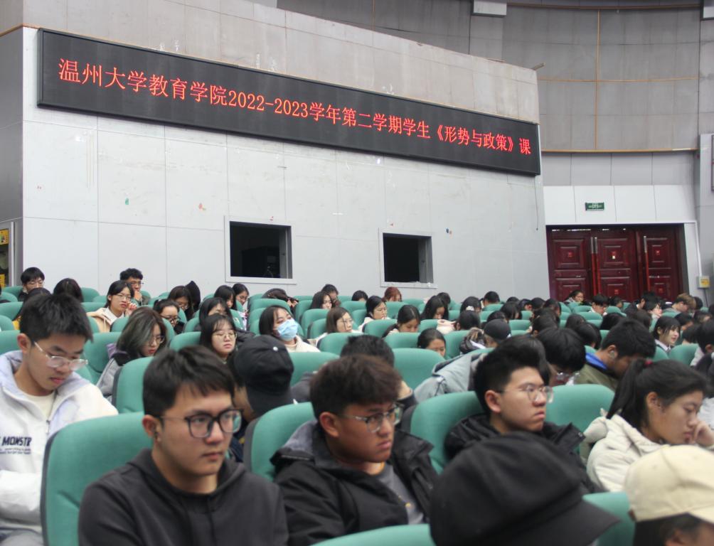 此次《形势与政策》课以“线下授课+线上直播”形式开展,泥巴影院 21级和22级学生于泥巴影院 一楼报告厅线下集中观看,其他年级学生在宿舍、教室以及实习单位等自主线上观看直播和回放。