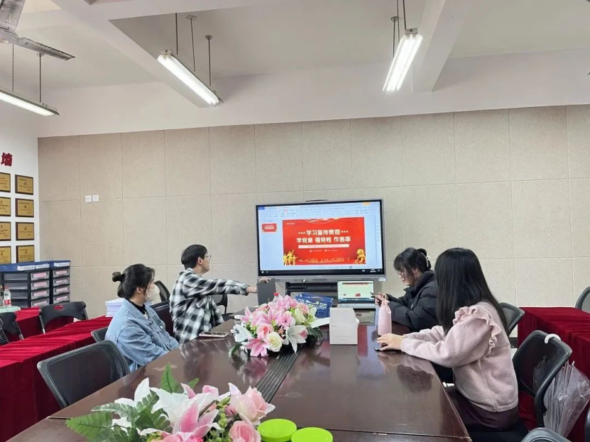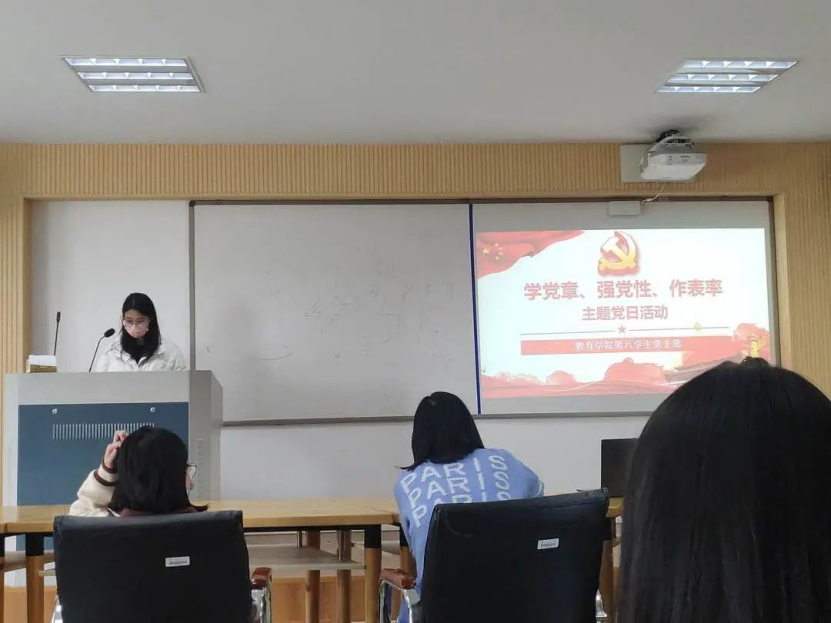 2023年4月2日,泥巴影院 第八学生党支部开展以“学党章、强党性、作表率”为主题的4月党日活动。本次的理论学习会由叶秀青、乔添琪、傅彬煌同志汇报理论学习情况。